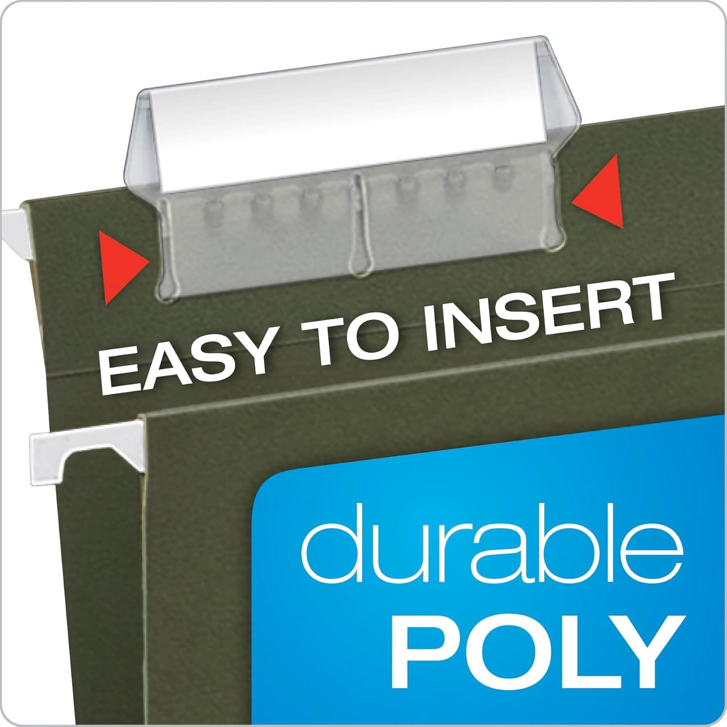 Product Description Pendaflex Hanging Folder Tabs allow you to customize your hanging folders. Clear plastic tabs (2" wide) with blank white inserts. Stagger the position of your tabs from folder to folder to keep each file heing in view. Tabs are large and angled for easy viewing. For letter and legal sized hanging folders. 25 tabs and inserts per pack. From the Manufacturer Pendaflex Hanging Folder Tabs allow you to customize your hanging folders. Clear plastic tabs (2" wide) with blank white