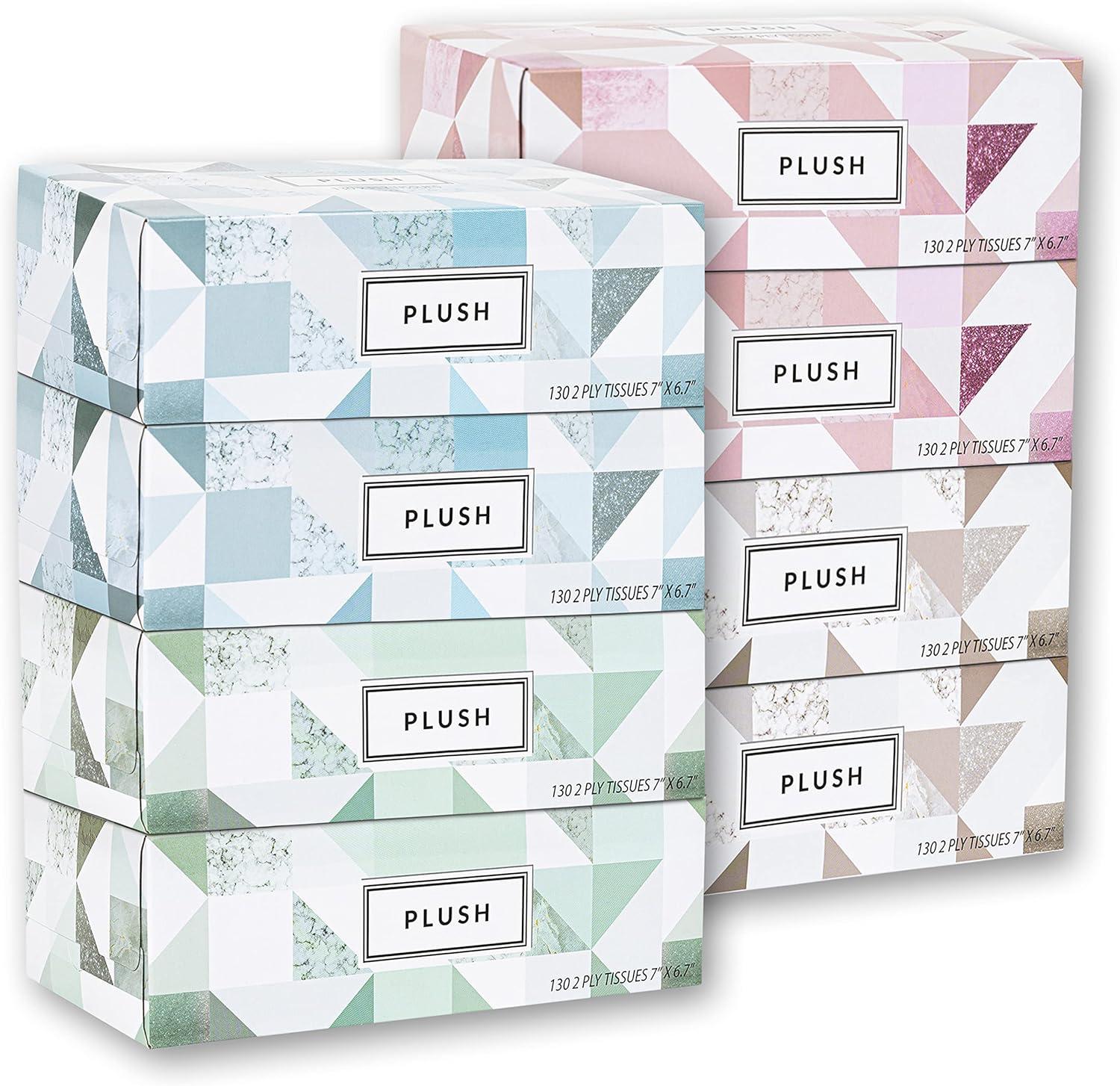 Facial Tissues 130 Per Box Size 7" X 8" 2 Ply, Great for Bathroom, Office, Store, School,Home, Kitchen, Or in Your Car & in Every Room Functional and beautiful, enjoy the plush tissue texture and elegant box design.
