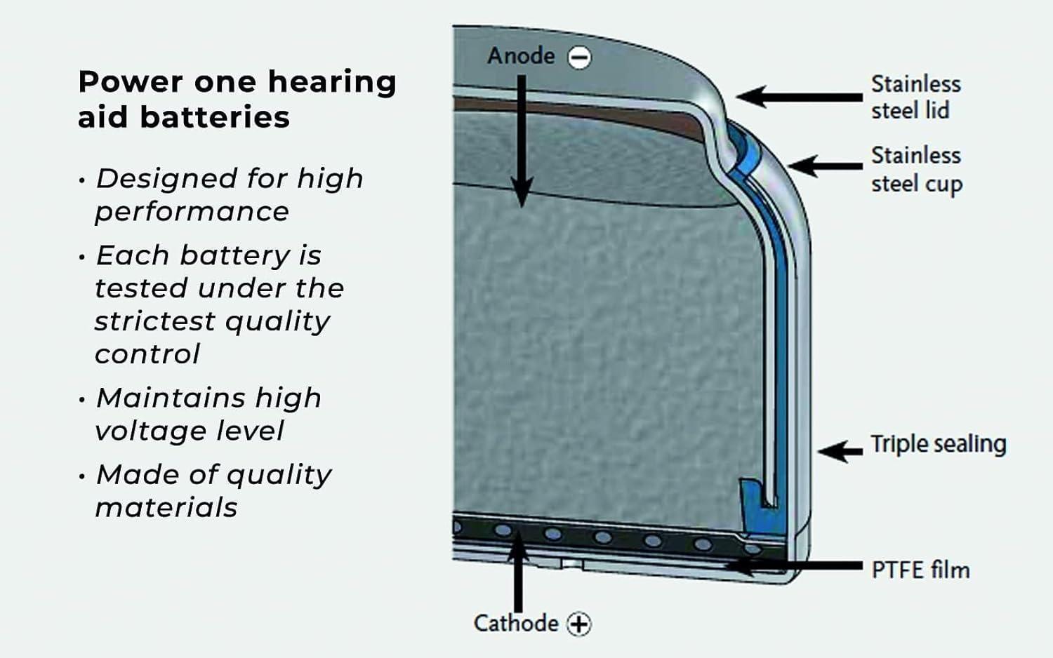 Please check expiration dates on the back of each card. Powerone hearing aid batteries have extra long tabs allow the user to insert the battery into the hearing aid with ease. Each battery is tested for its electrical and mechanical characteristics in accordance with its specifications. Highly developed film seal for every battery guarantees that the battery does not dry out or drain prematurely. The stainless steel housing provides high-level stability and safe protection against corrosion. Qu