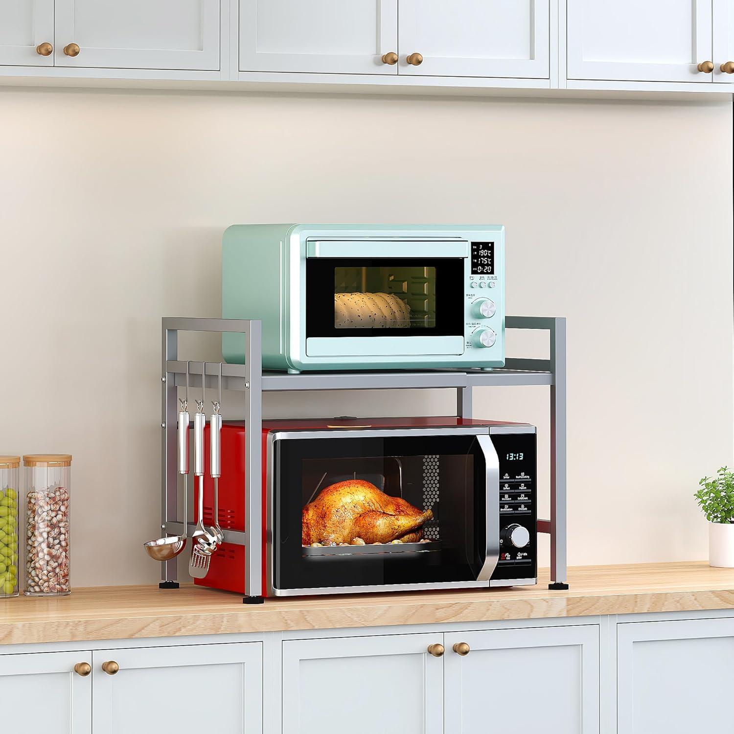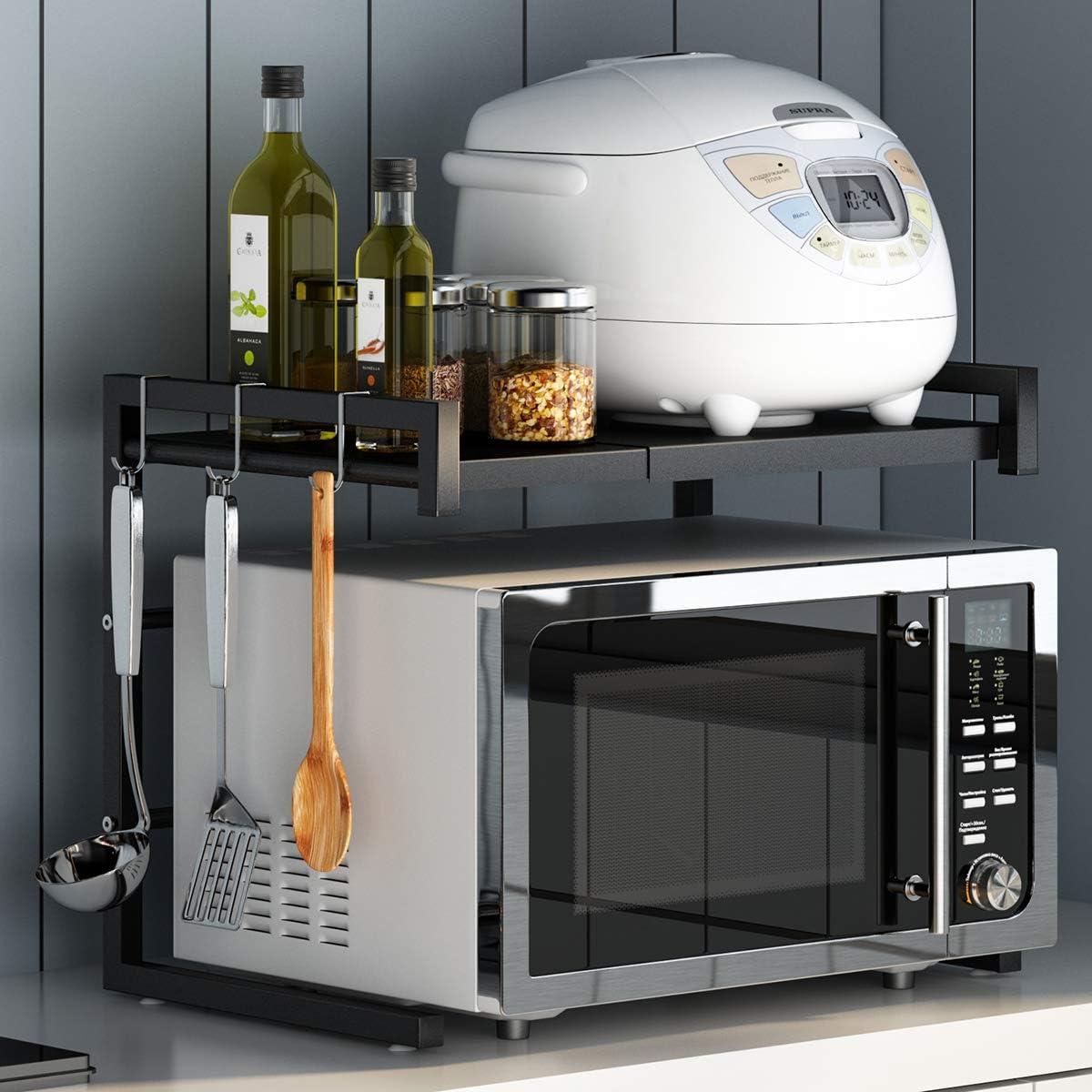 Have you tired of the large microwave carts for kitchen? No worries! Check our premium expandable microwave rack which can be easily justed to the right length of your countertop, stylish yet multi-functional. Upgred Microwave Rack for Kitchen Organizer Pusdon Microwave Oven Rack is thick and heavy duty, featuring high lo-bearing capacity and matte painted texture. The extendable design can easily be justed to fit different sizes of microwave ovens. There are 4 non-slip suction cups on the botto