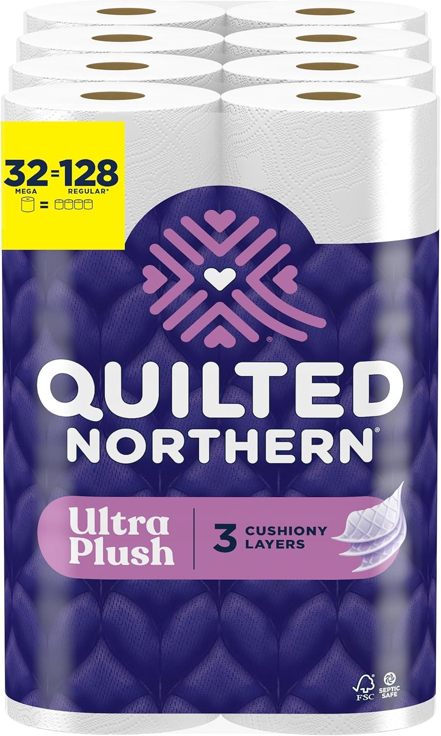 Bring elevated comfort to your bathroom with Quilted Northern Ultra Plush® toilet paper. Each roll is crafted with three cushiony layers to deliver a soft, cozy feel every time. It’s 3X thicker and 3X more absorbent than the leing value brand toilet paper, giving you the signature softness you love while reducing what you don’t—lint! Me from responsibly sourced trees, it’s a choice you can feel good about. Each pack includes 32 Ultra Plush® rolls, with 255 3-ply sheets per Mega Roll— totaling 11