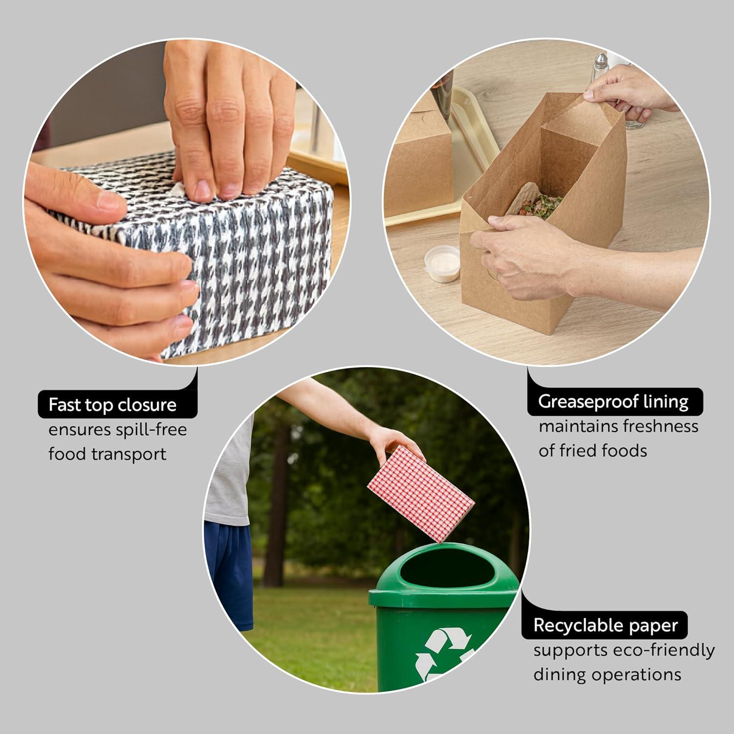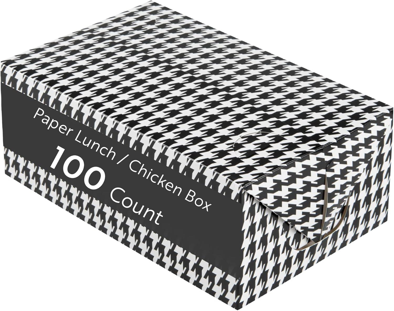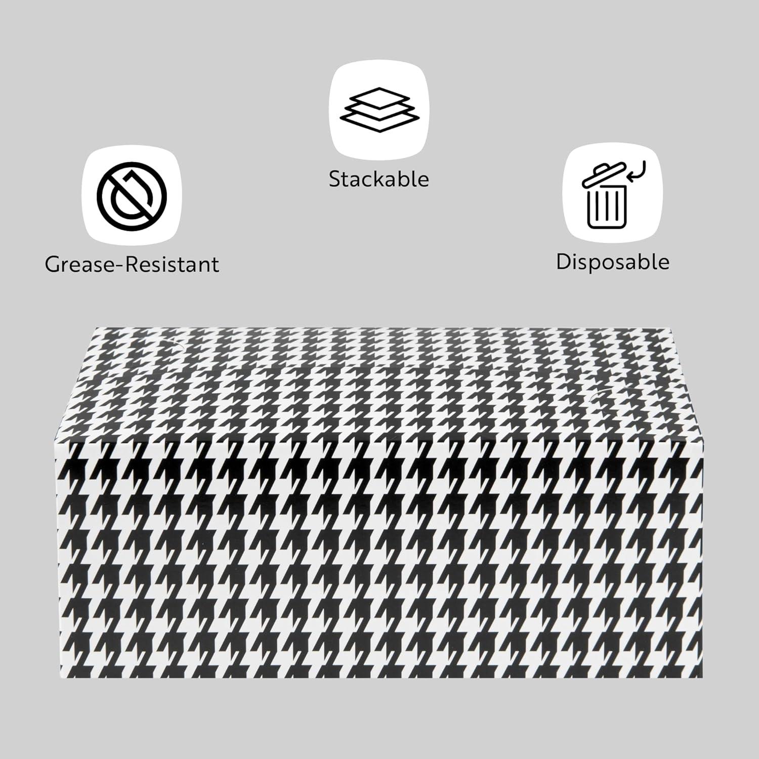 Elevate your food packaging game with our Bio Tek 47-Ounce Black Houndstooth Paper Lunch / Chicken Boxes. These take out boxes are designed with a fast top and flap closure for quick, easy, and secure packaging. Crafted from paper cardboard, these takeaway boxes are perfectly suited for both hot and cold foods. These to go food containers are greaseproof, providing a clean and no-mess experience for your customers. Ideal for food storage, these carry out boxes are freezable, ensuring your leftov