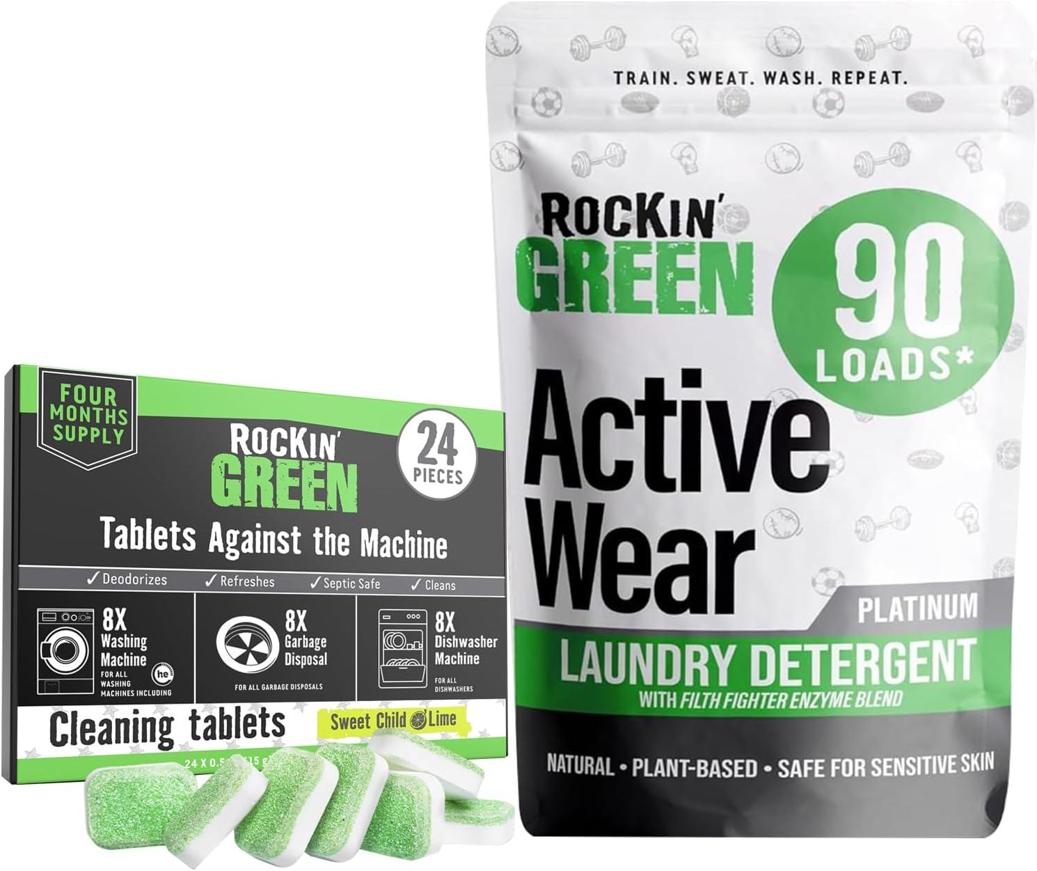 - Defeat Stubborn Stains and Odors: Rockin Green Activewear washing powder is formulated with powerful plant-based enzymes that break down even the toughest stains and odors from sweat. Enjoy clean and fresh workout gear, including leggings and gym shorts every time!