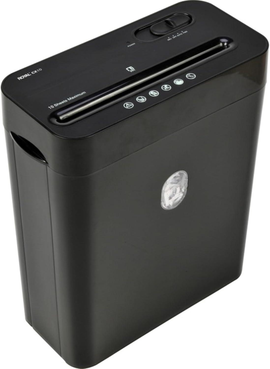The Royal CX10 Crosscut Shredder is the ideal shredder for the home office. This shredder is able to grind 10 sheets of bond paper at a pass into unreable chips. It can easily destroy expired credit cards as well, and it's large 3.5 gallon pullout waste bin that can hold hundreds of shredded pages. The Royal CX10 shredder ensures destruction of the most sensitive of papers.