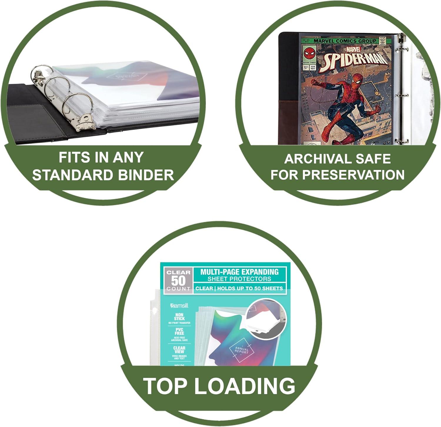 Samsill is a family-owned manufacturer located in the USA. We pride ourselves on creating the most durable products for office and school supplies. There is no easier or safer way to protect important documents than with Samsill Sheet Protectors. Our 25 pack of high-capacity heavy duty sheet protectors for 3 ring binders accommodate standard letter-size 8.5x11” sheets for versatile document storage. Each multi-page capacity protector can hold up to 50 sheets of paper, making them ideal for birth