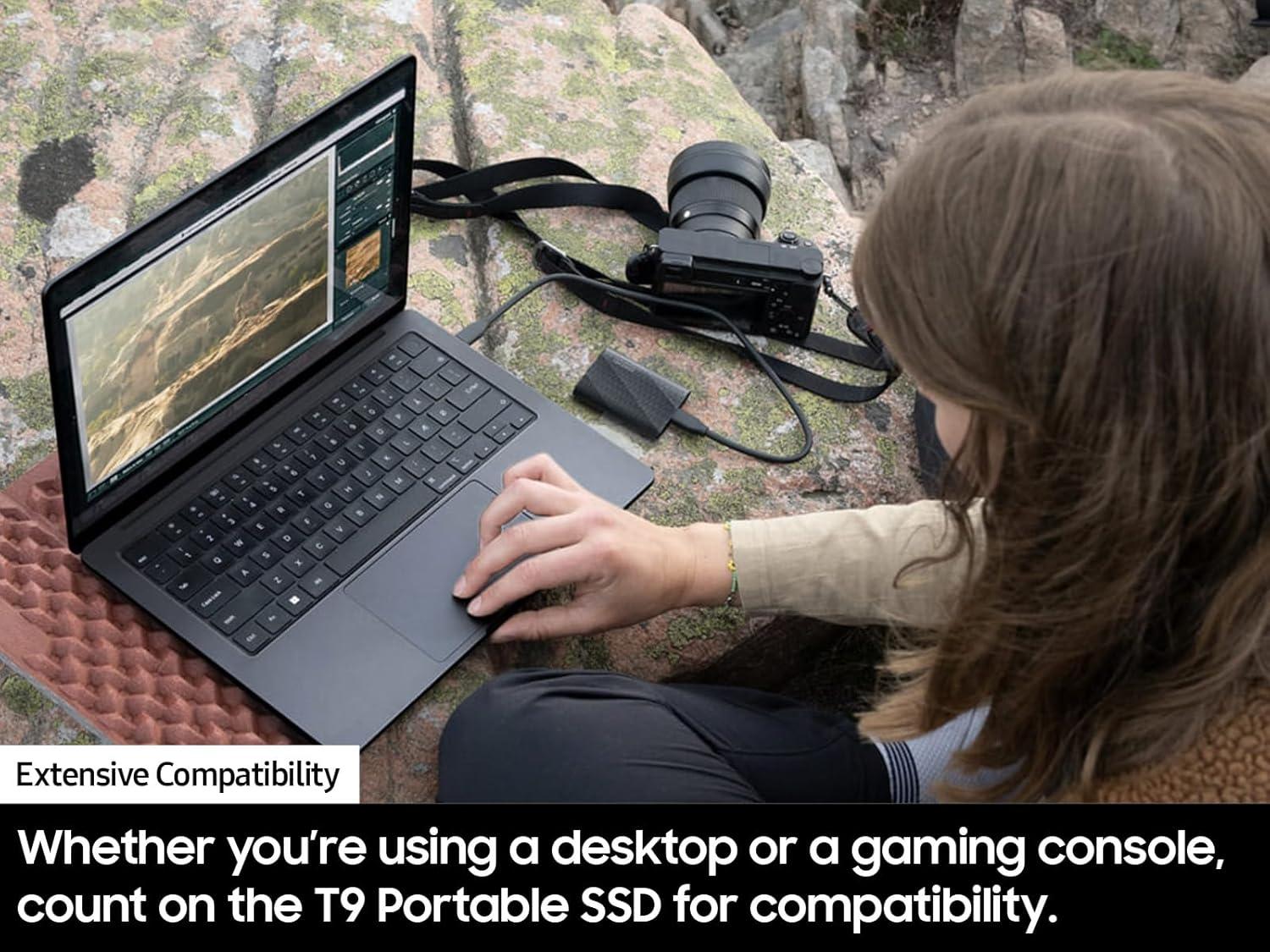 d power to all your projects with up to 2,000 MB/s transfer speeds1—stellar performance fast enough to for the tasks that matter most. With up to 4TB capacity, the T9 Portable SSD offers plenty of storage space making it a safe bet for capturing all your creative endeavors. 1Performance may vary depending on host configuration. To reach maximum sequential re/write speeds of up to 2,000 MB/s, respectively, the host device and connection cables must support USB 3.2 Gen 2x2 and the UASP mode must b