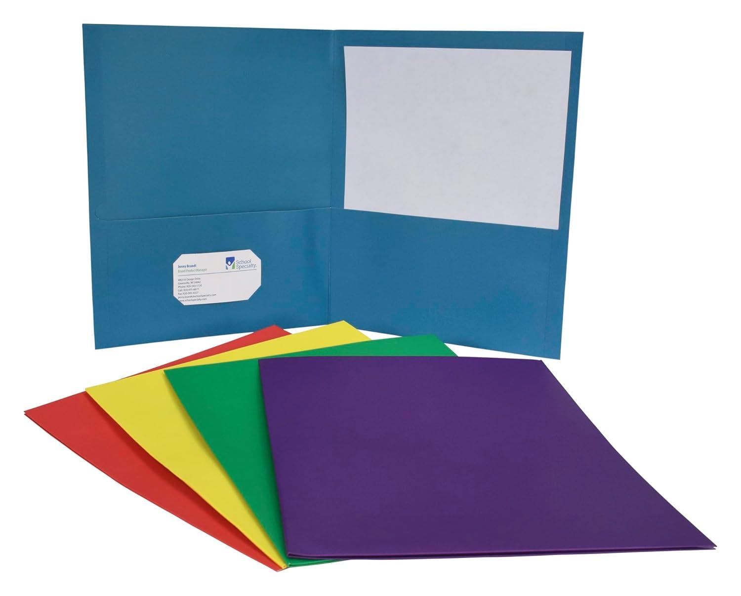 Organize your classroom, office, or home with the School Smart 2-pocket folders 25 pack. Our durable two pocket folders hold up to 100 sheets and come in different colors. Use these blank 2-pocket folders for report covers, business presentations, or tritional storage for important documents. An embossed leatherette texture lends quality for both professional, school, and personal needs. The double pockets are closed on three sides (outer edge, top, and bottom) to ensure your papers stay securel