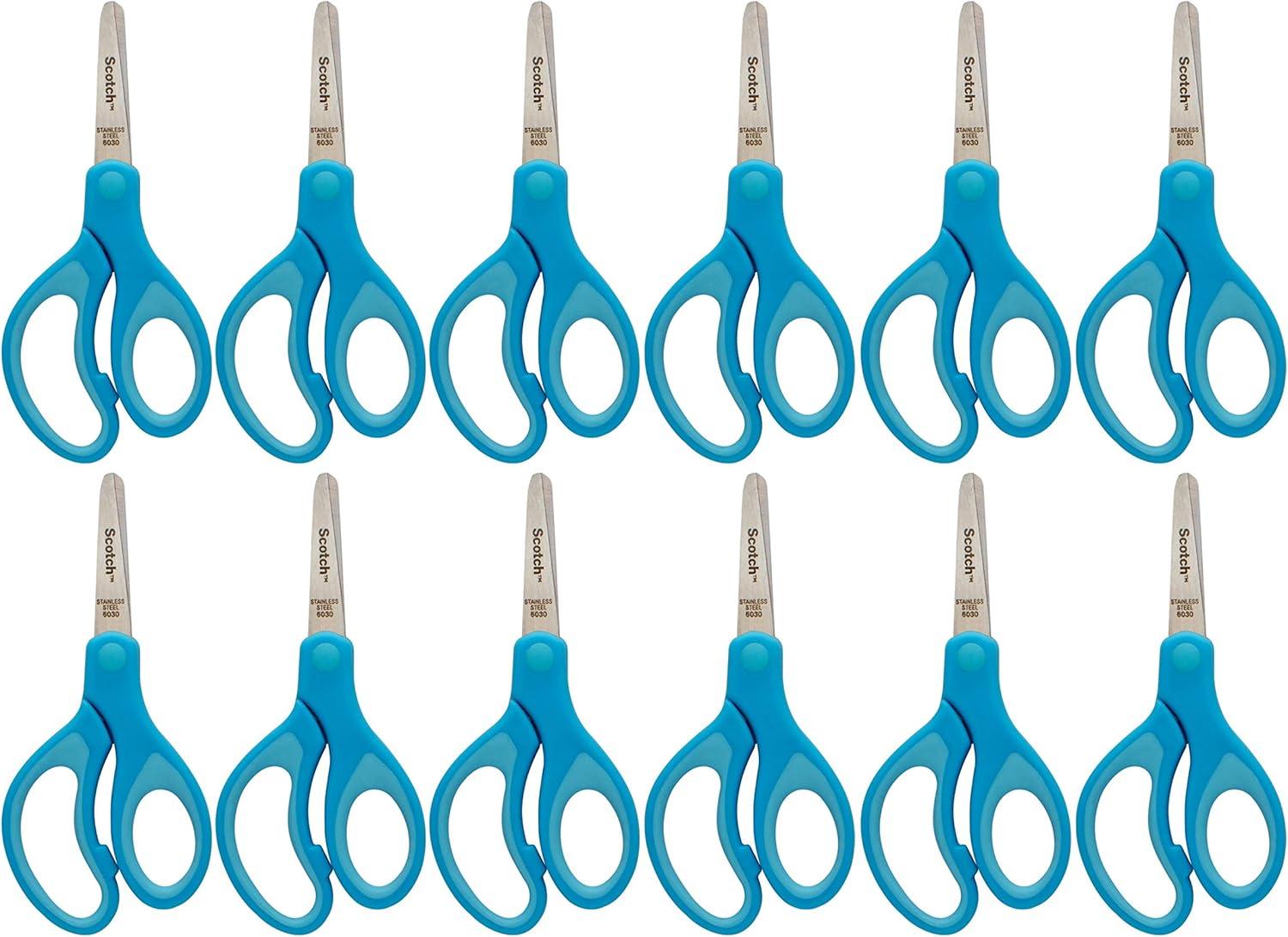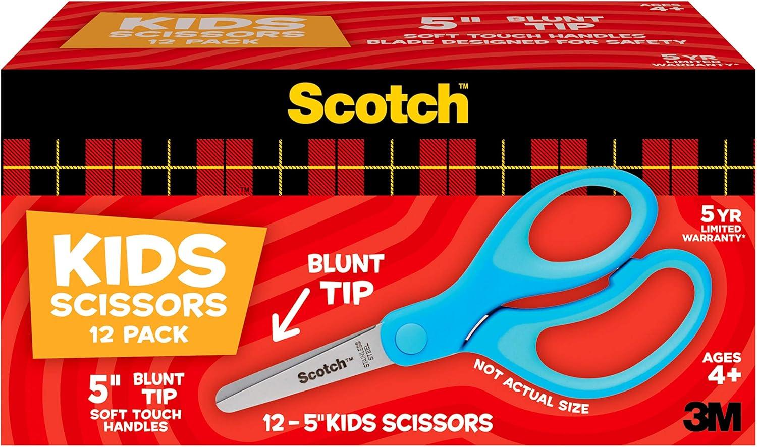 Classroom pack includes 12 CT of Kids 5" Blunt Tip Scissors. Features a soft grip handle ideal for small, growing hands. Single color pack of blue scissors. Scotch Kids Scissors are designed for safety and for both left and right handed use. For Ages 4+. Ideal for a variety of classroom projects.