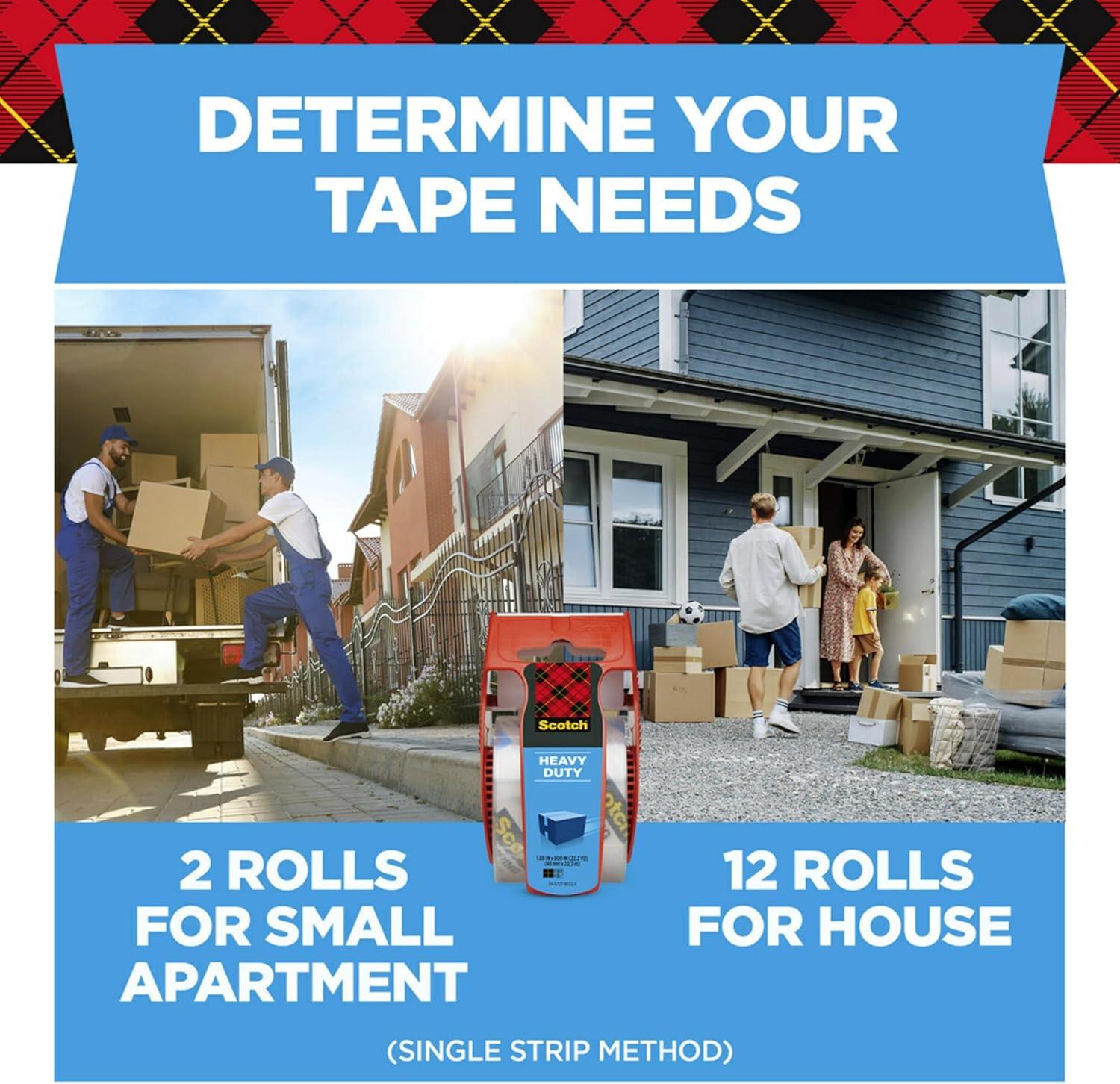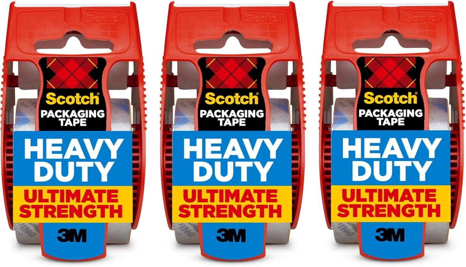 Scotch High Heavy Duty Packaging Tape is designed to meet your moving and shipping needs. A clear tape, with hot melt rubber resin hesive for heavy boxes. Dispenser designed to ensure the tape will not fall back on the roll, and the tape has an easy unwind. Meets U. S. postal regulations for standard packages. Great for general shipping or moving needs, such as packing boxes in the office. Me in the USA.