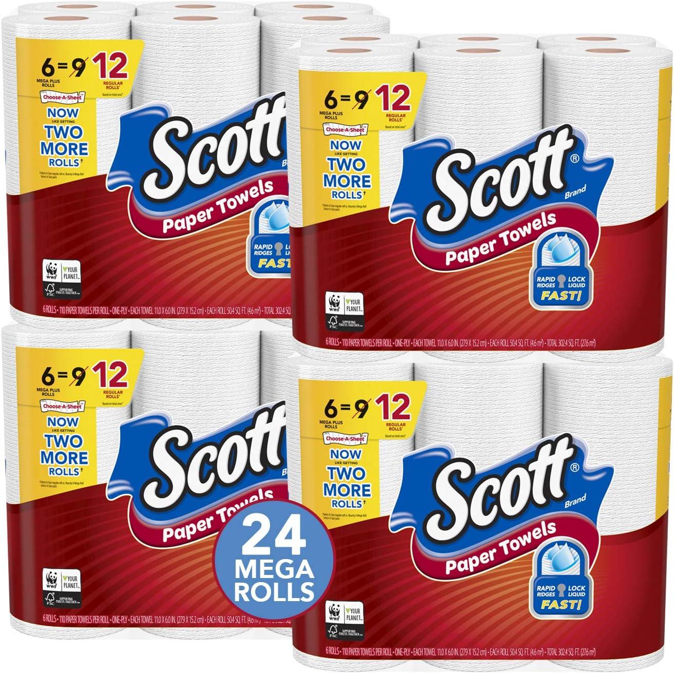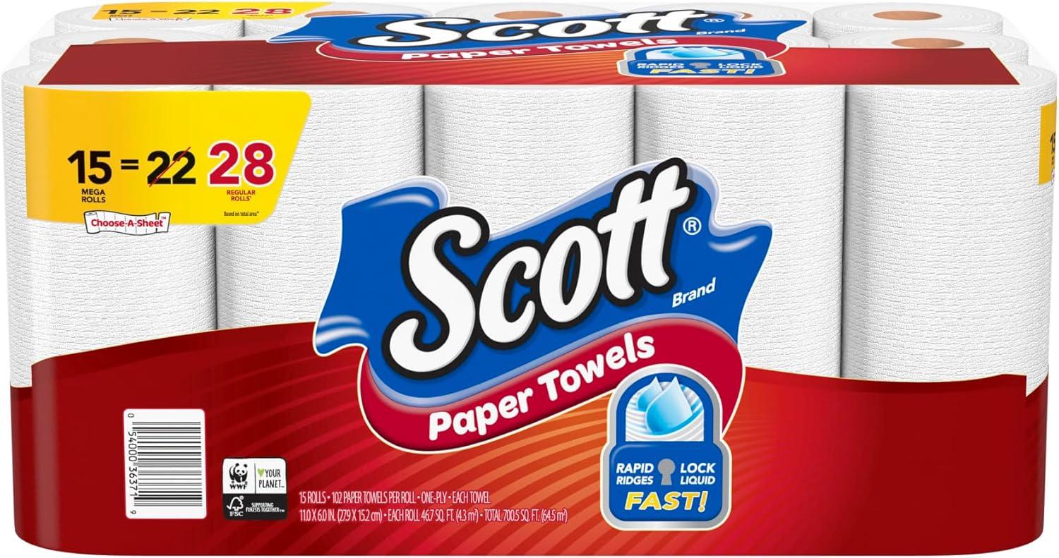 Scott brand disposable paper towels clean messes fast with Rapid Ridges to get the job done. When you buy Scott Towels, you get more sheets per dollar vs. the leing brand 55 ct. roll 5.9” sheet size. Use a paper towel to clean up tabletops, food spills, and messy hands for ults and children. Conveniently disposable so you can toss the mess without having to launder. Minimal lint makes Scott towels great for cleaning glass and mirrors. Scott paper towels are sustainably sourced from responsibly m
