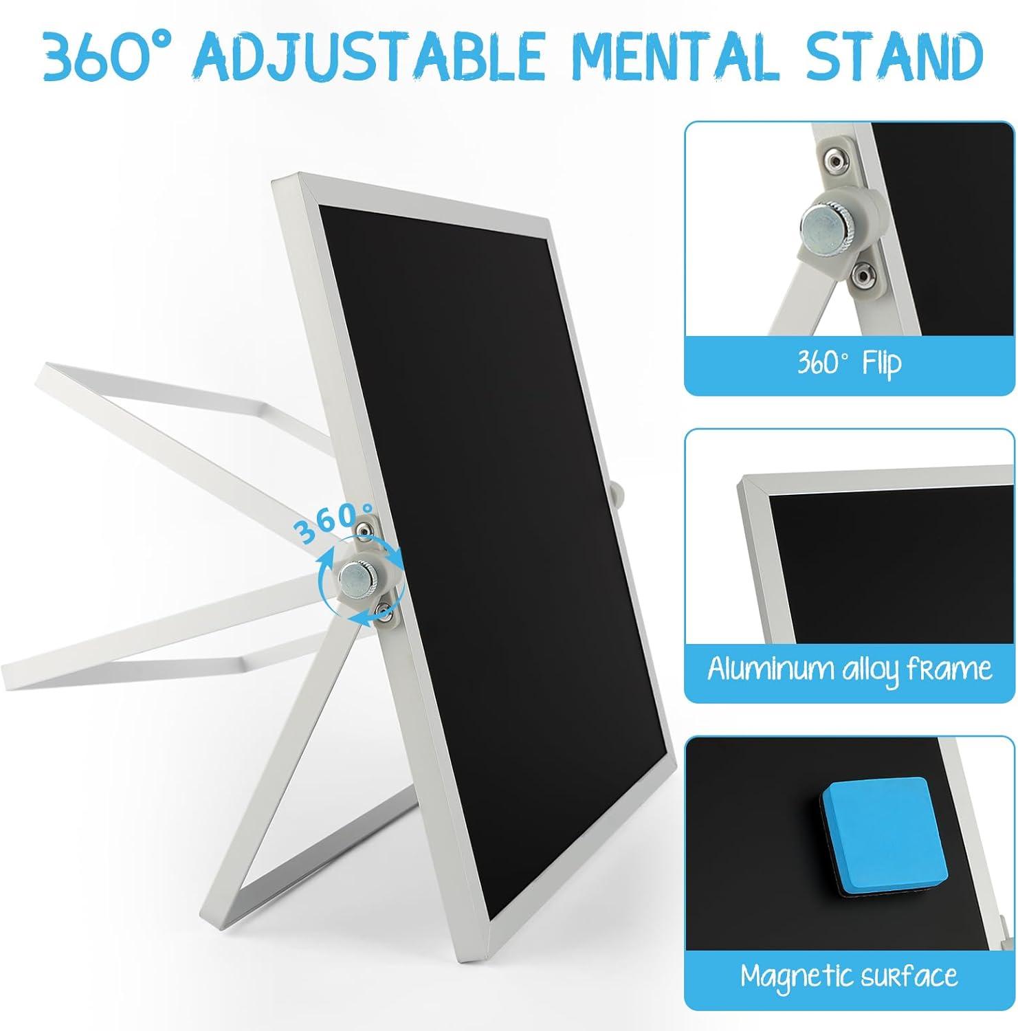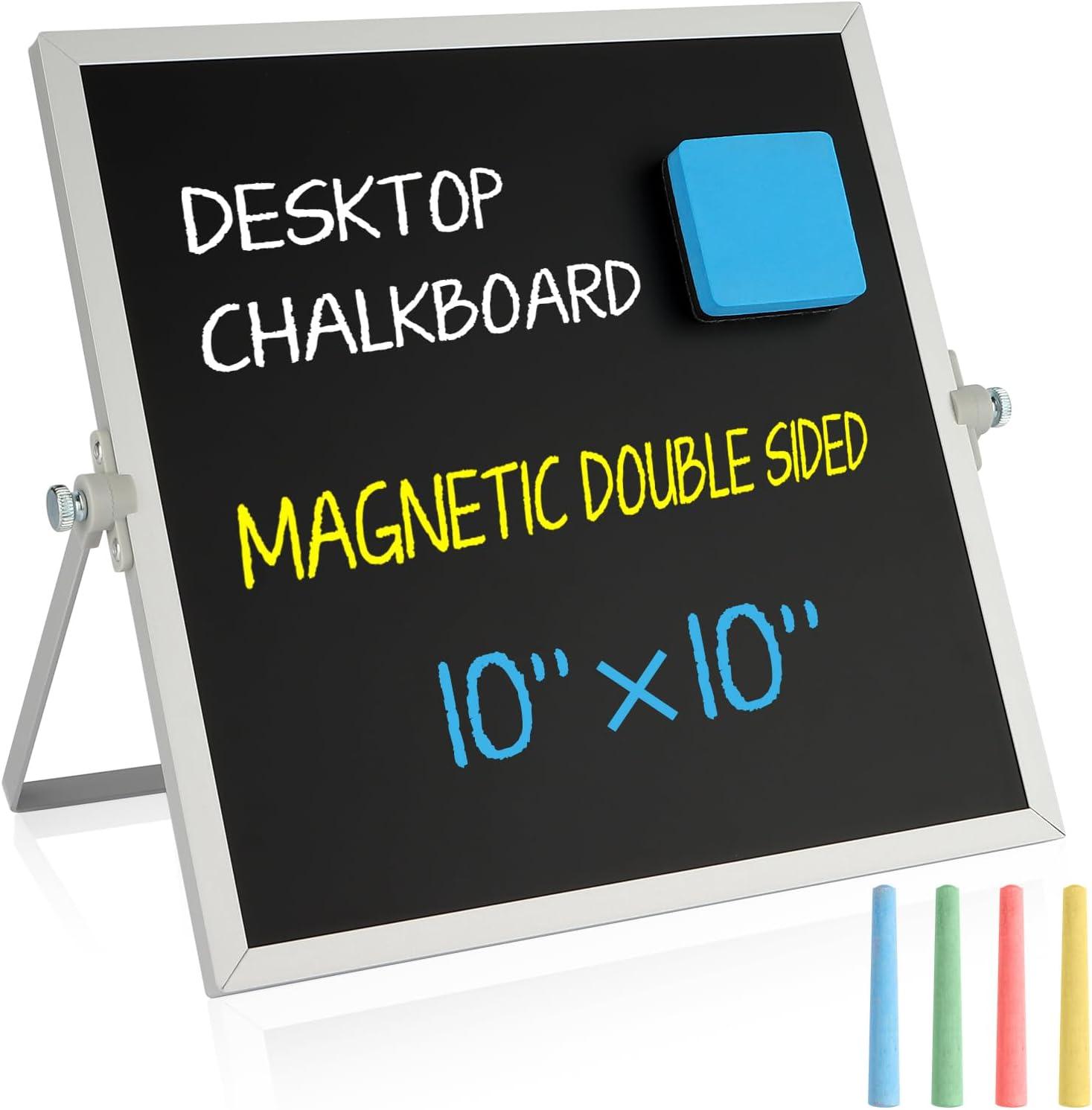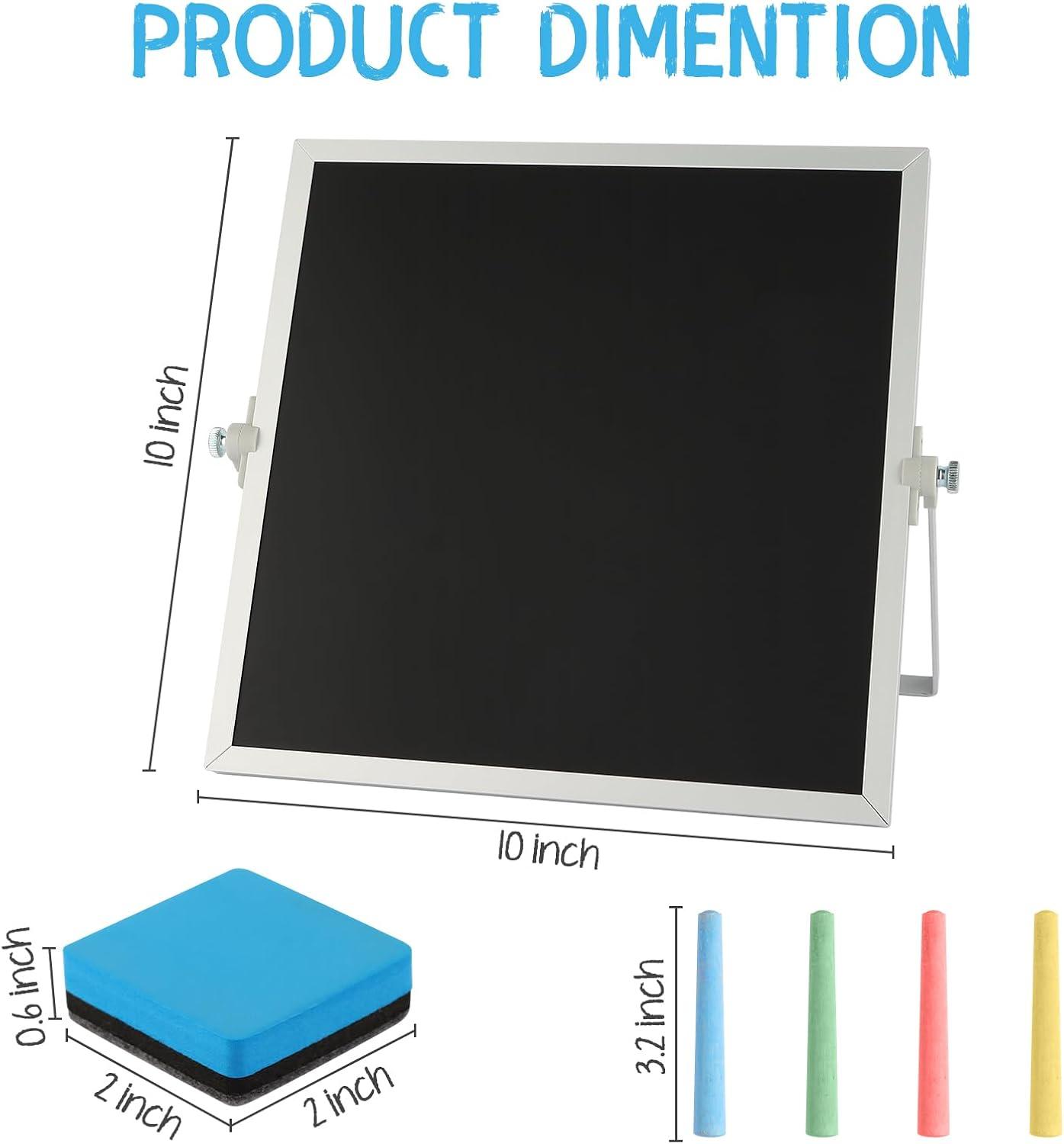 Looking for a creative way to jot down ideas or messages? Check out our Mini Desktop Chalkboard! Measuring a convenient 10” x 10”, this little gem comes with four colorful chalks and a handy eraser, making it perfect for all your writing needs. Me from eco-friendly MDF with a sleek aluminum frame and a black metal backing, this blackboard isn't just stylish but also built to last. Plus, it features a 360° justable knob, so you can set it at the perfect angle for whatever you’re doing—whether it’