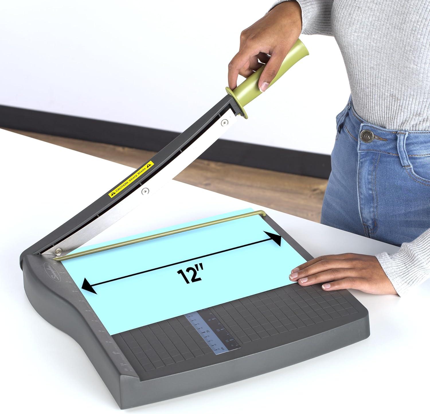 The Swingline ClassicCut Lite Guillotine Trimmer is simple, stey, and precise, with a sharp guillotine ble that cuts through papers with ease and an alignment grid that ensures accuracy. Sturdy trimmer is also light and easily transportable, with a durable plastic base. A 12” cutting length makes it a convenient choice for most general trimming tasks, whether at home or in the office. The trimmer easily cuts paper, photos, and more, cutting up to 10 sheets each time. The alignment grid helps ens