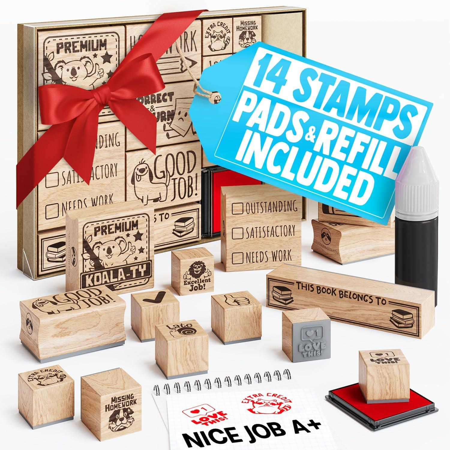 - Our stamps are perfectly sized. You're juggling lessons, behavior, gring, and everything in between. This thoughtfully designed teacher stamp set for classroom use includes: 2 large stamps, 3 rectangular stamps for gring, 1 long stamp for key reminders, 8 small round stamps for quick, fun feedback.