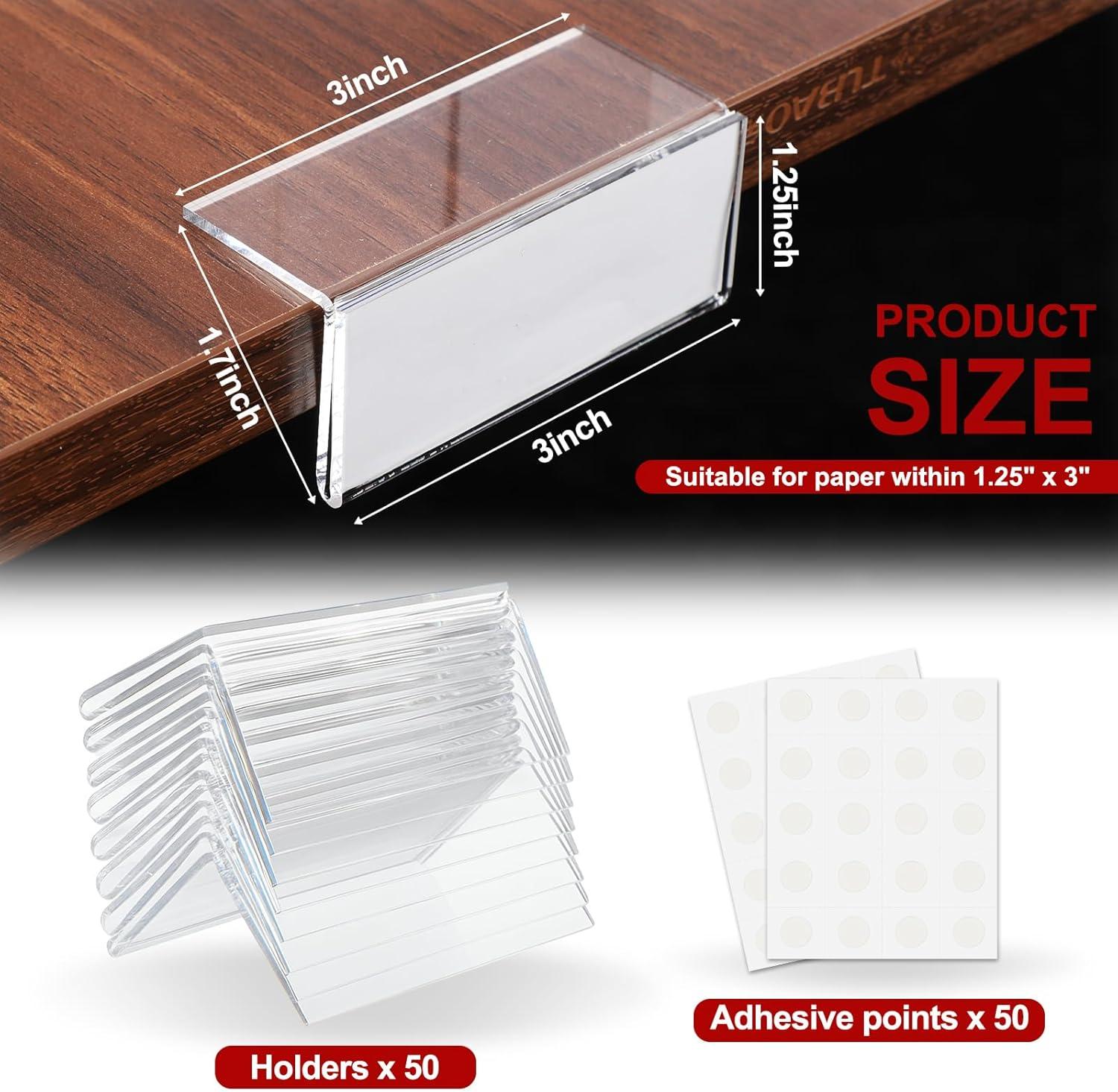 - Comprehensive Cost-effective Set: equip your display with our economical set featuring 50 acrylic shelf label holders and 100 hesive dots, nice for multiple installations; The durable hesive dots make justments simple and leave no residue, maintaining the neatness of your display; Ideal for efficiently organizing your space