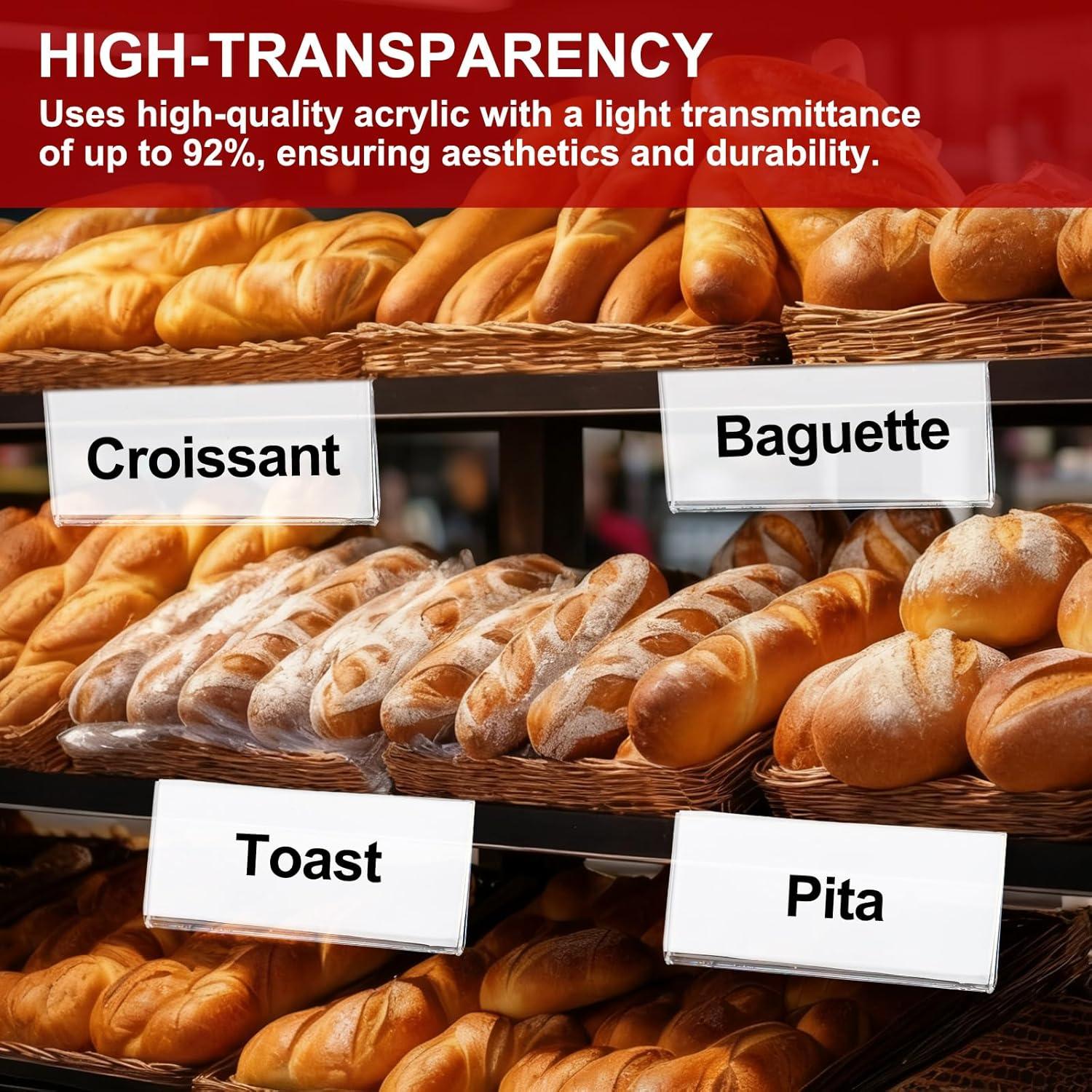 - High-transparency Acrylic: using superior acrylic with 92% light transmittance, these shelf label holder displays d elegance to your environment; Our shatter-resistant material ensures durability while maintaining its clear appearance, helping customers easily identify products and enhancing the overall shopping experience