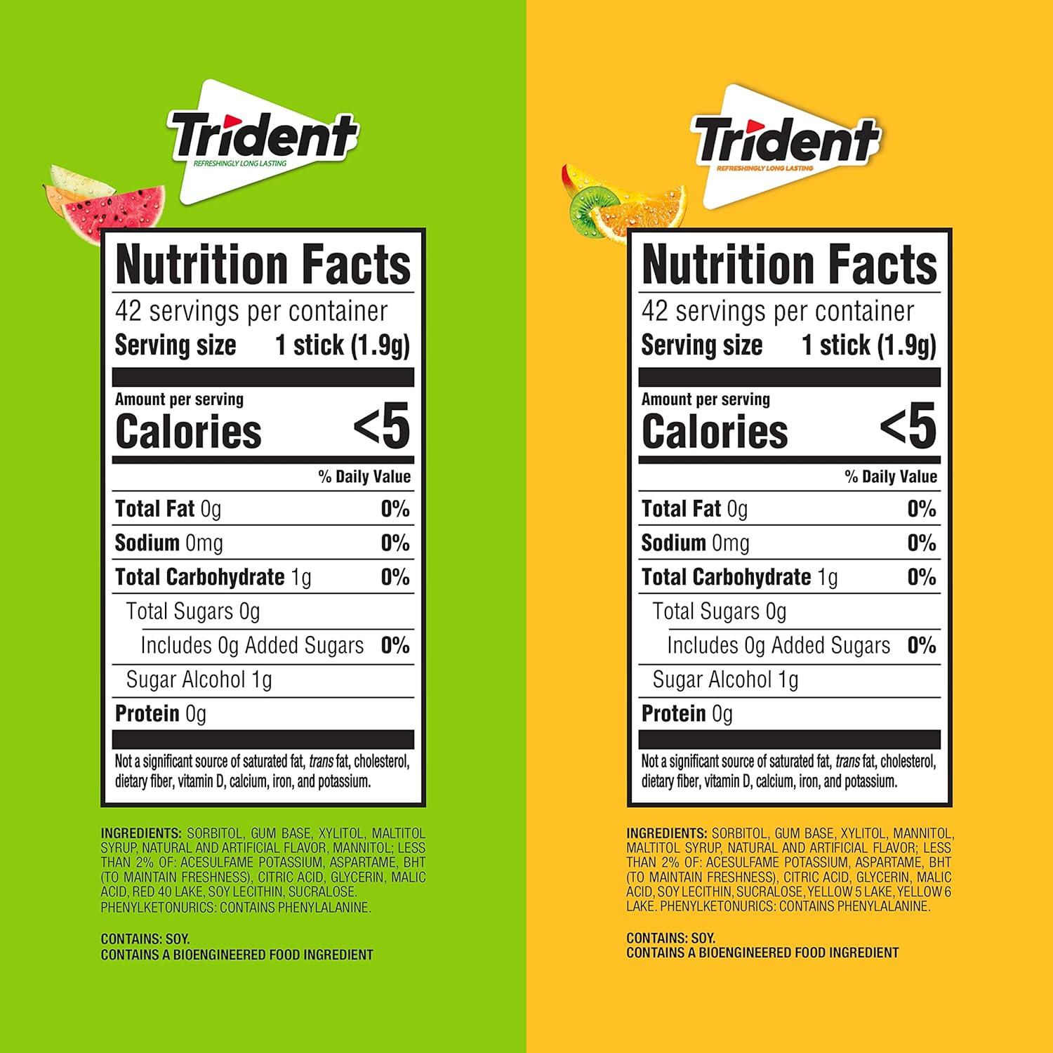 Sugarless and packed with flavor, Trident delivers a feel-good chewing experience. It’s me with xylitol, a natural sweetener that can help fight plaque and protect against tooth decay. Clean and protect your mouth simply by chewing Trident after eating or drinking! Unapologetically Flavorful -Freshen breath (and care for your mouth) with flavor you can taste and feel. Trident comes in cool long-lasting flavors that give you close-up confidence. This gum is perfect for care packages, gift baskets