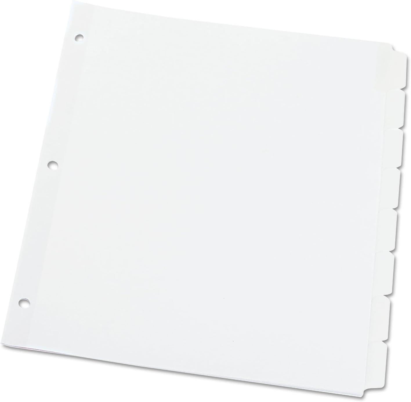 Write directly on coated tabs with nonpermanent ink and erase with standard eraser to reuse again and again. Holes for binder rings are reinforced with clear plastic to prevent tearing. Three-hole punched for use in standard ring binders. Tab Style: 8-Tab; Tab Color(s): White; Index Divider Size: 11 x 8 1/2; Form Quantity: 1.
