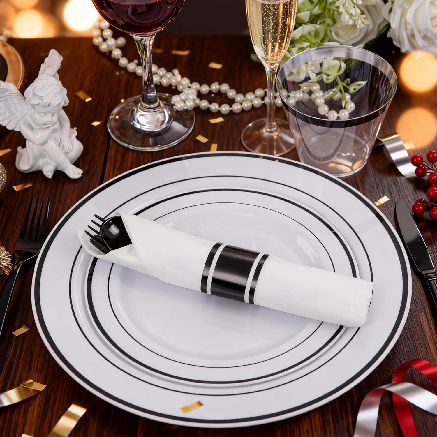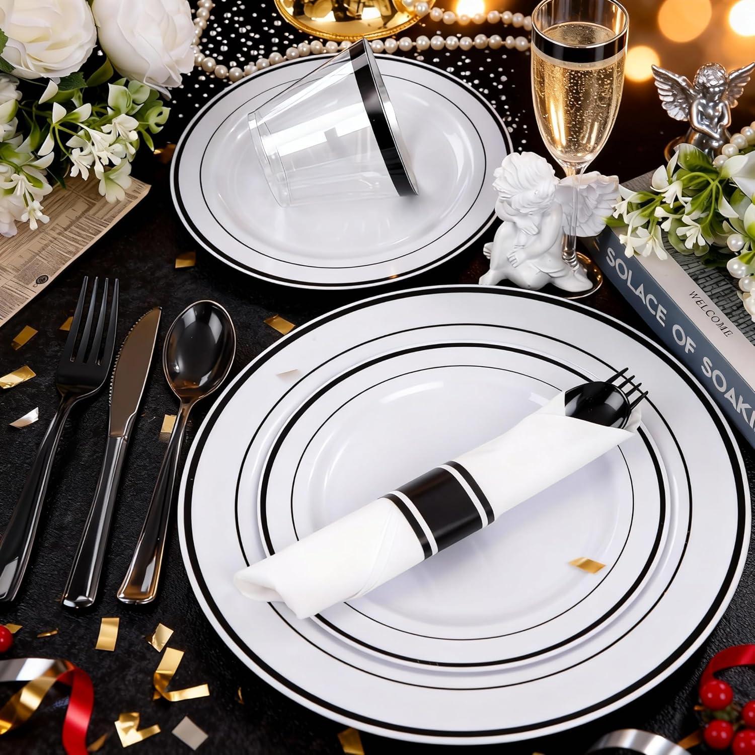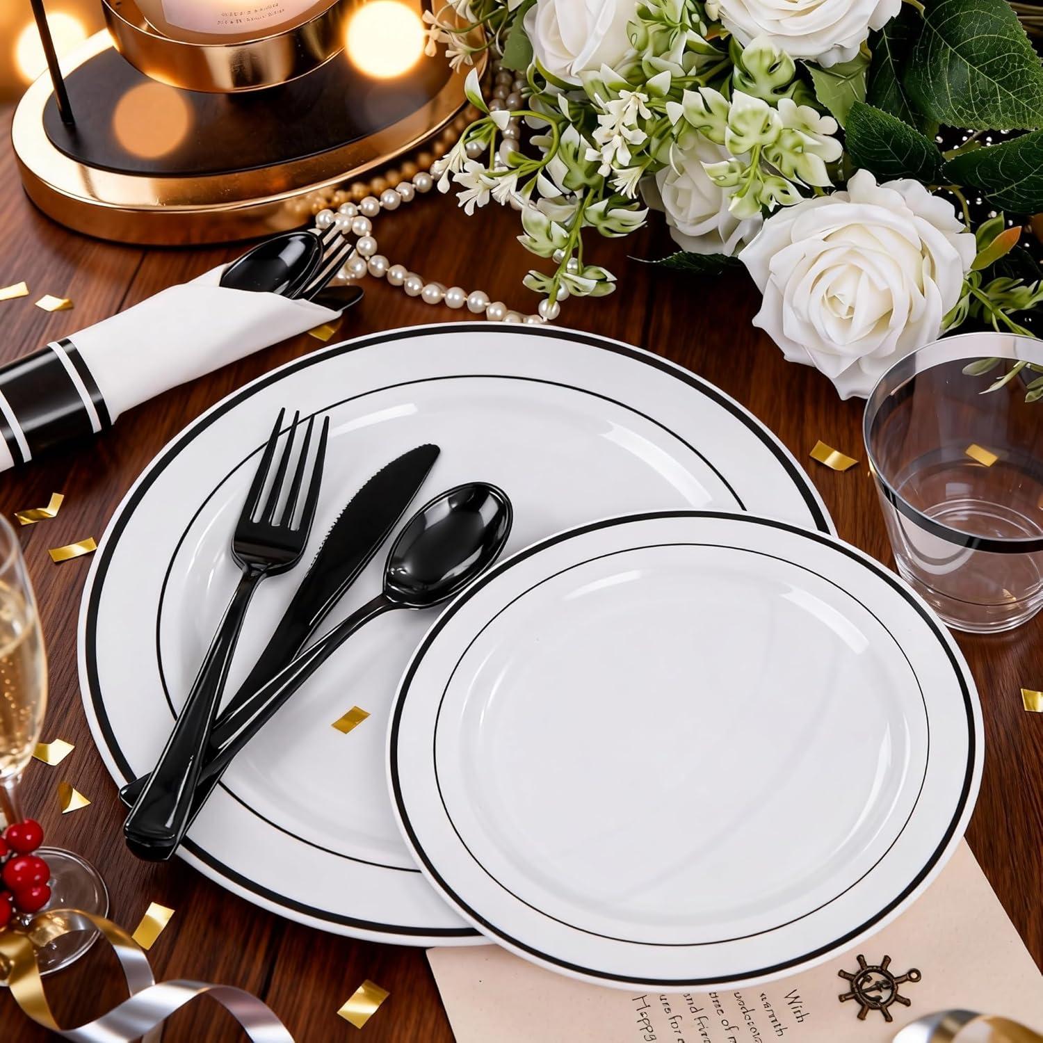| Set Name | WELLIFE 210Pcs Black Plastic Dinnerware |
