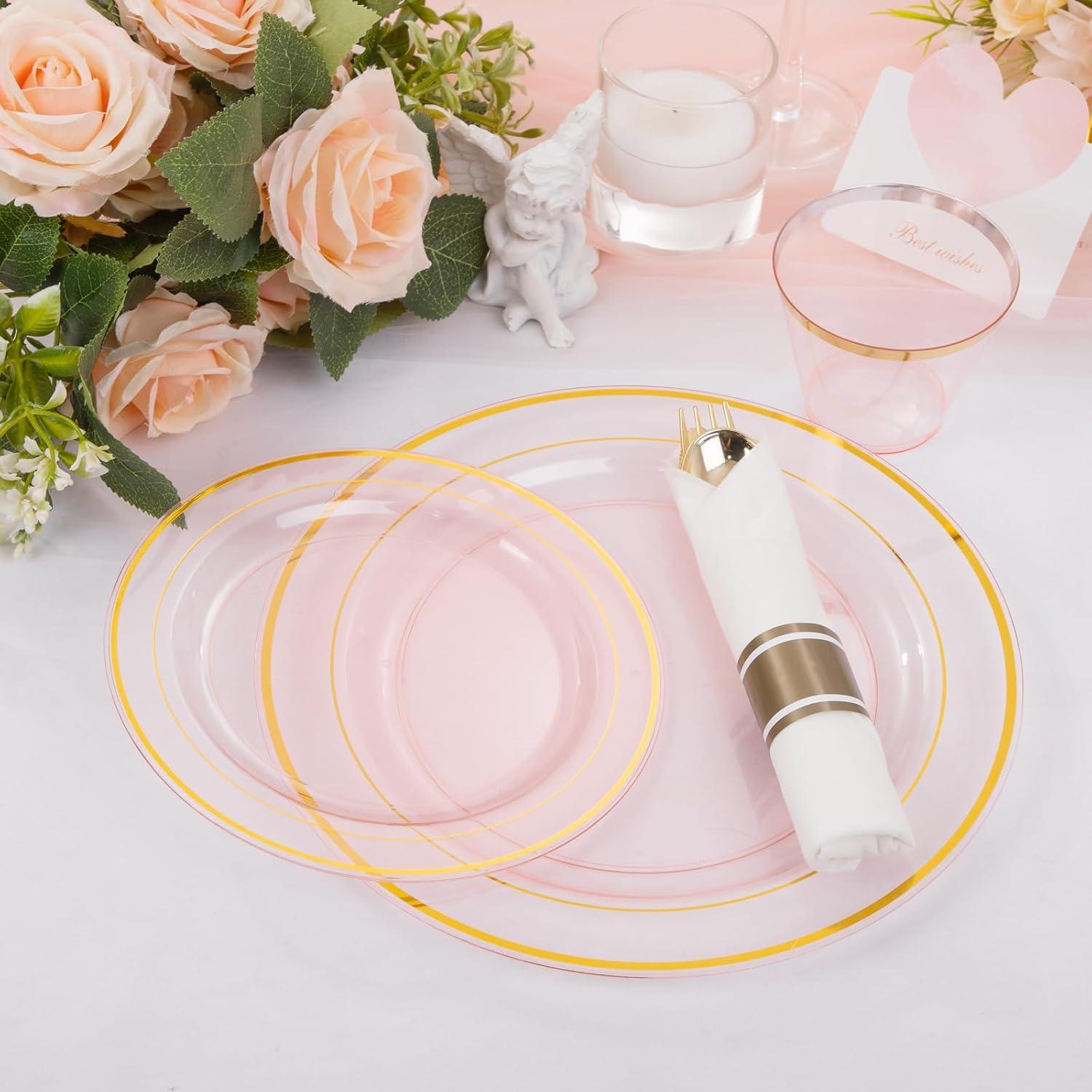 | Set Name | WELLIFE 210Pcs Clear-Pink Plastic Dinnerware Set |