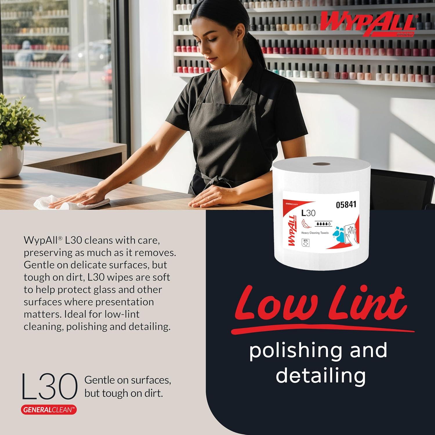WypAll is the number one brand of disposable wipes in the US and Cana. Create a clean work environment with light to medium duty general cleaning solutions. When you're looking for a lighter-weight towel at an everyday great price, you can trust WypAll General Clean L30 Heavy Duty Cleaning Towels. They are designed with the DRC (double re-creping) process, which gives you high surface softness (a towel-like feel) with a reinforced grid that's strong for wet surface wiping and cleaning. These Wyp