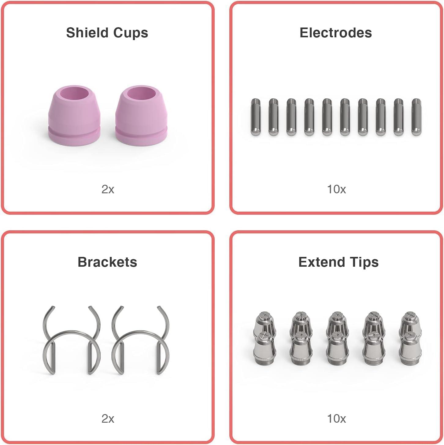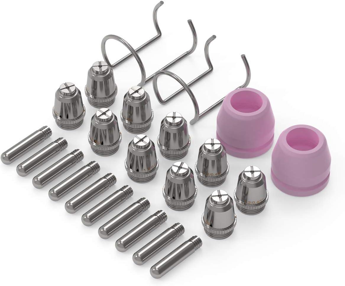 YESWELDER 24PCS AG-60 Plasma Cutter Torch Consumables Kit (Standard)/ 10 x .040'' Nozzles, 10 x Electrodes, 2 x Cups, 2 x Brackets For SG-55 AG-60 WSD-60