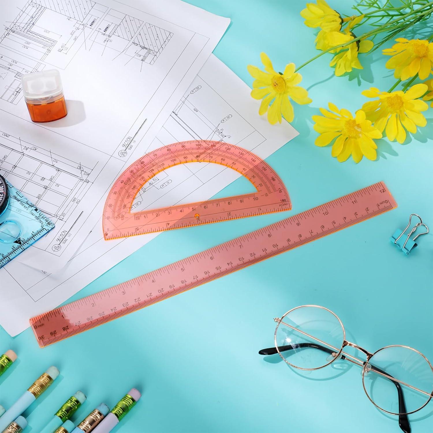 Features: Meaningful gifts: You can give the class set of rulers to your children, friend, colleagues or neighbors as a birthday gift or holiday gift to facilitate their studies and work, and deepen your relationship. Considerate design: The transparent appearance with the scale line of the protractor set allows you to quickly get the information you need when measuring, and the scale line is clearly printed with simple appearance, bringing you a good learning experience. Specifications: Materia