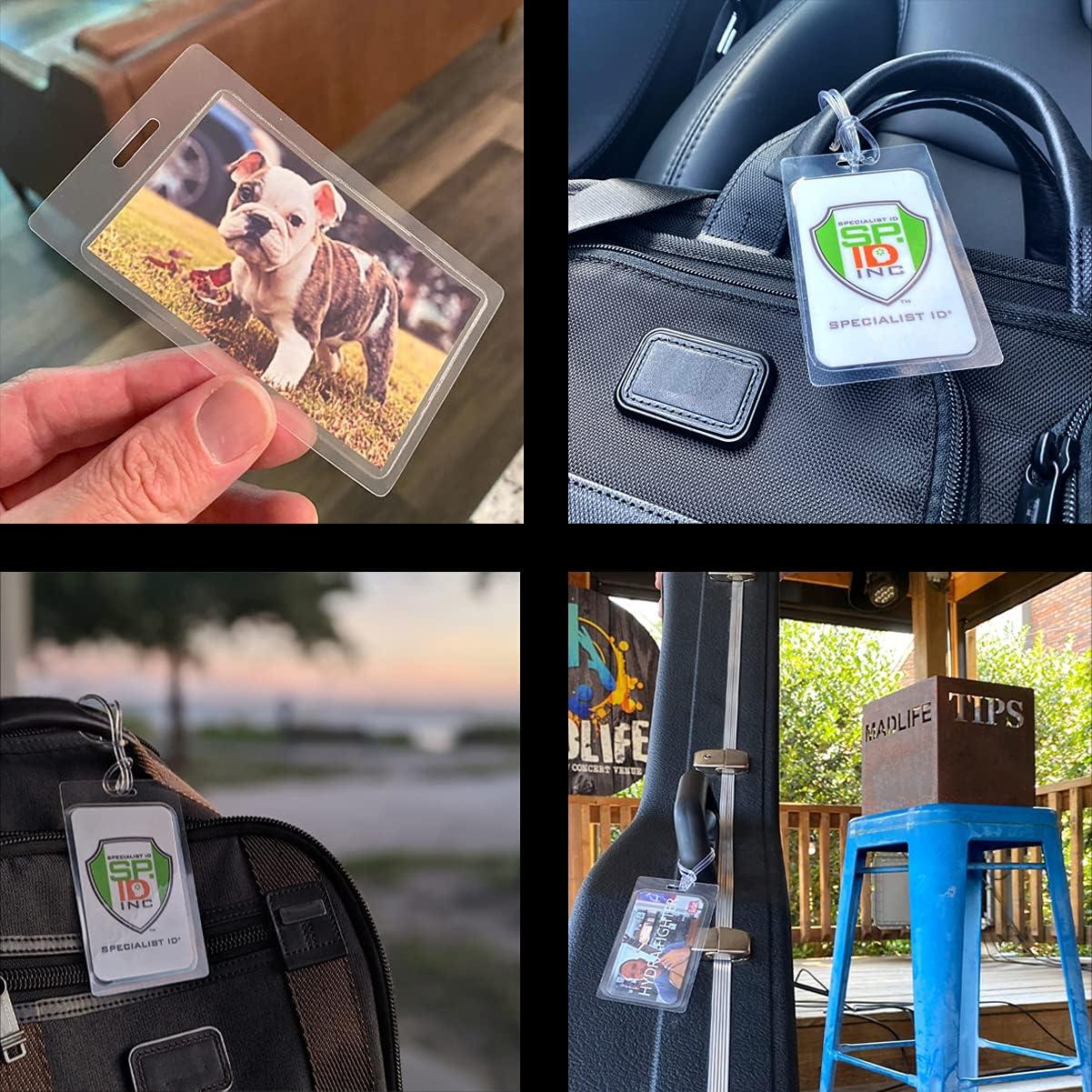 - SLOT HOLE FITS LUGGAGE LOOP (INCLUDED) & I’D BADGE CLIPS - In Bulk These are Great For Commercial Business ID Bges. Find a Template Online, d a Picture, and Voila You Have a Laminated Access Card for Your Employees. The Slot Hole Works with Any Lanyard, Bge Clip, Bge Reel, or ID Holder