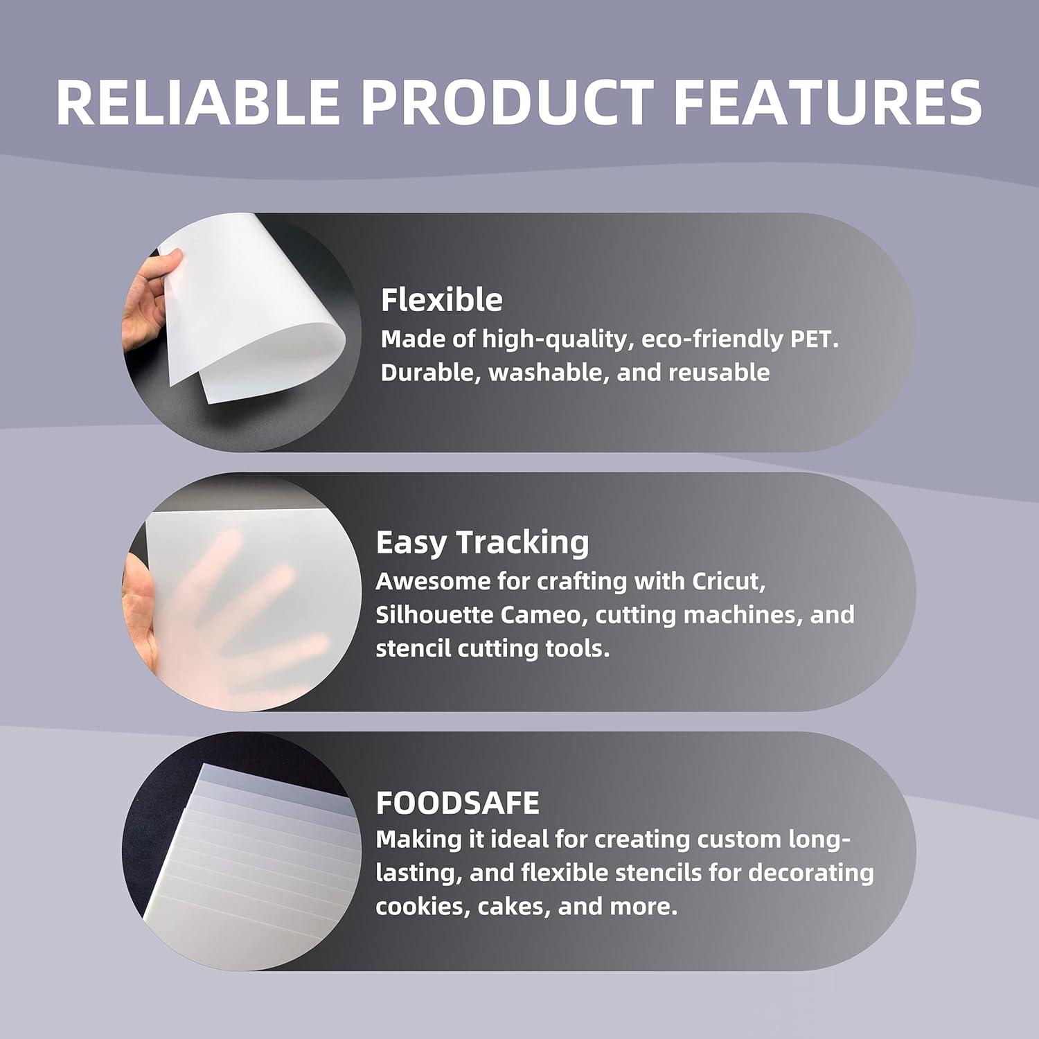 - FOODSAFE: This FoodSafe Craft Plastic is perfect for kitchen use, making it ideal for creating custom long-lasting, and flexible stencils for decorating cookies, cakes, and more. It is safe to use with all types of food and can withstand temperatures of up to 120°F (40°C), provided the alcohol content does not exceed 8%.