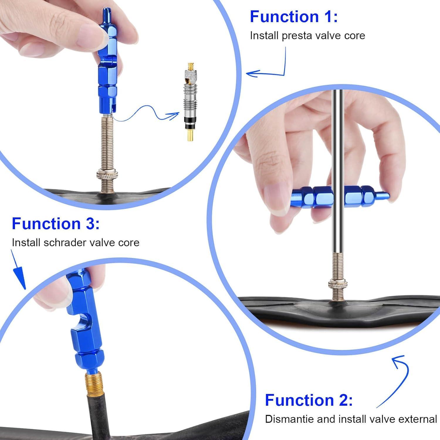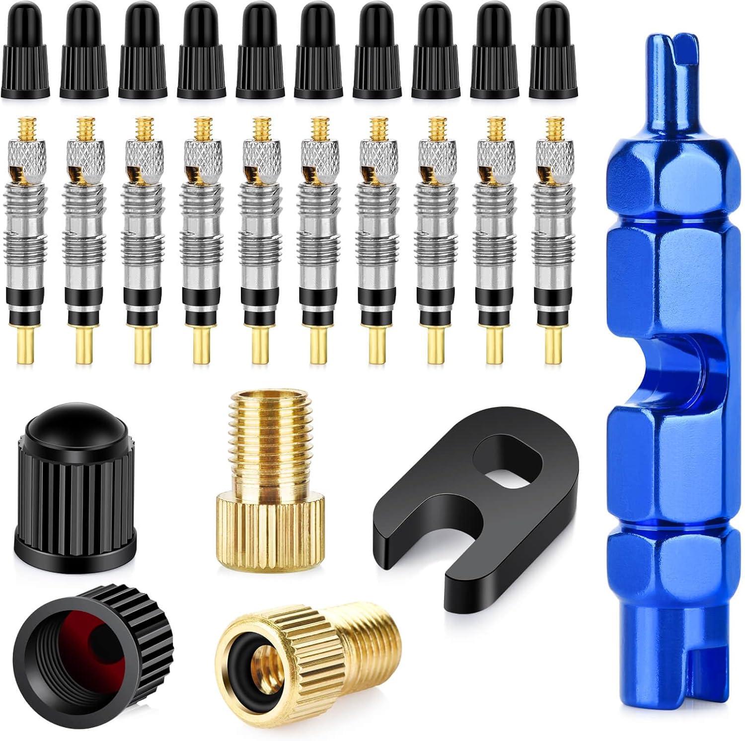 26 Pieces Presta Valve Core Repair Kit,Tubeless Valve&Presta Valve Caps;Valve Core Removal Tool and apter with Black Tire Valve Caps
