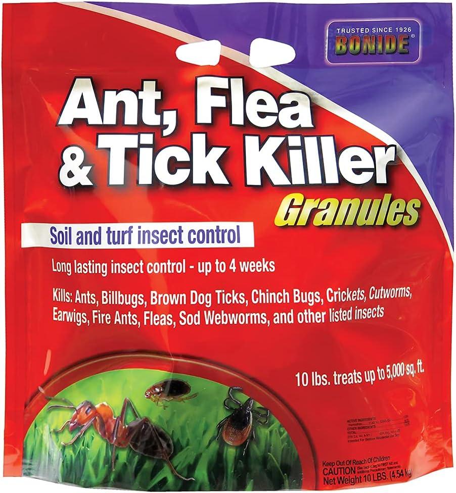 Fast acting, long lasting (4 weeks) insect control for lawns and home foundations. Great for ants, fire ants, fleas, ticks, crickets, earwigs, spiders, sowbugs, silverfish, clover mites, chinch bugs, armyworms, sod webworm, leaf hoppers, millipedes and certain grubs. 10 lbs treats 5,000 sq. ft.
