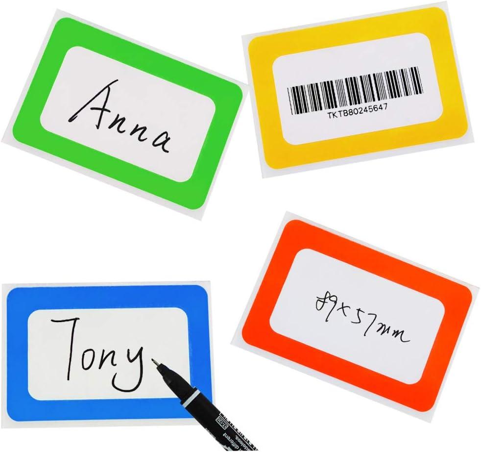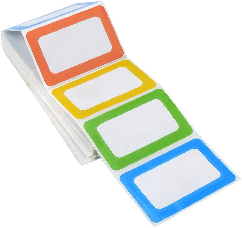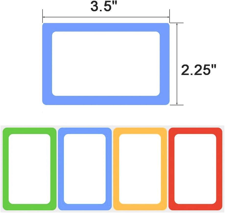 Colorful Sticky Name Tag Labels 3 1/2 X 2 1/4 , 200 Stickers Product Specifications: ◆ Colored borders: red, yellow, green, blue ◆ Each Label Size: 3.5" X 2.25" ◆ 200 labels per box to help you storage well Product Features: ◆ Name tags labels are strong hesive, stick securely without curling and falling off. ◆ Easy to peel, just peel & stick. ◆ Remove easily and cleanly, you can remove the name tag stickers from clothes cleanly without leaving residue. ◆ All-Purpose labels, wide applications, p