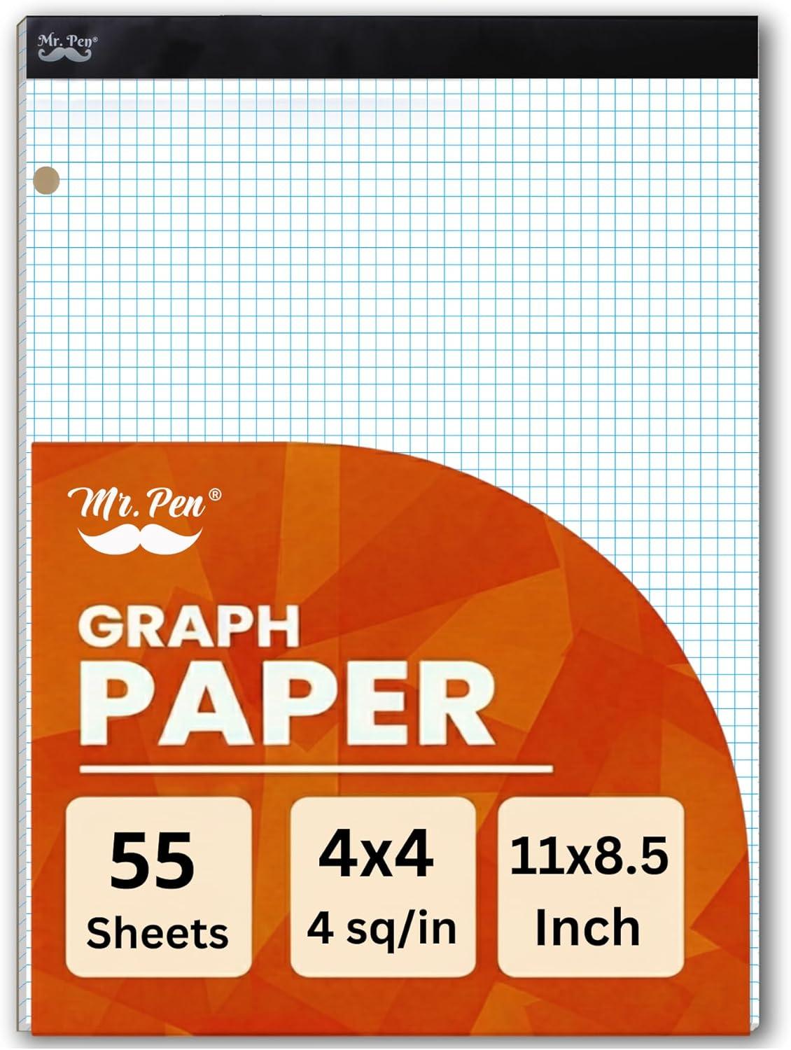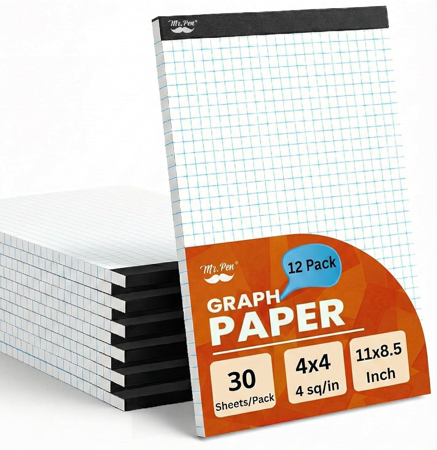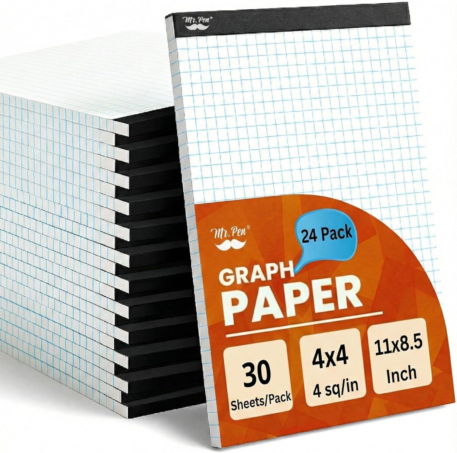 Mr. Pen graph paper comes in a convenient 24-pack with 30 sheets per pack, offering ample supply for all your graphing and calculation needs. Crafted from premium-quality paper, each sheet is designed for smooth writing and durability, ensuring a great user experience. The standard 8.5" x 11" size provides plenty of space for accurate drawings, equations, and diagrams, making it perfect for school or work. Featuring a 4x4 grid (4 squares per inch), this graph paper offers the precision needed fo
