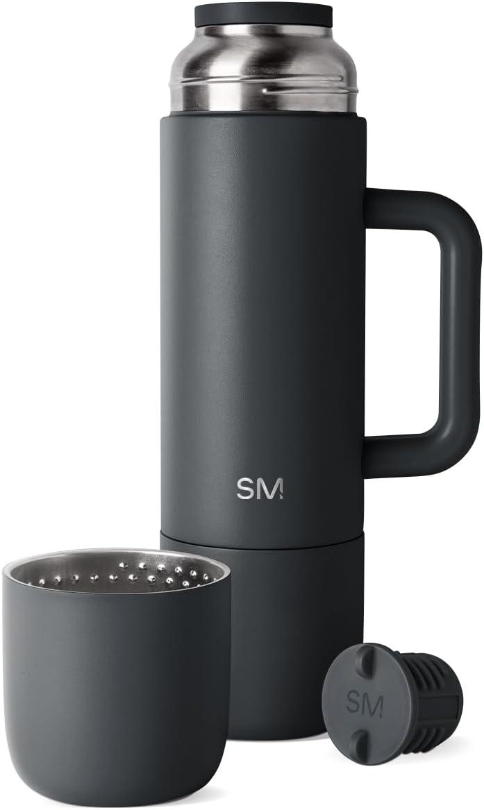 The Simple Modern Roam Insulated Bottle is a travel friendly and high performing 36oz thermal bottle. Our wide mouth bottle is created for commuting and relationship. The sturdy handle is designed for an easy pouring experience and for durable travel use. The Roam comes with two 12oz mugs that thre onto each end of the vessel so you're never without a mug. ditionally, our vacuum seal lid is designed with a "Twist and Pour Top." Turn your cap 90 degrees and pour directly from the thermos into you