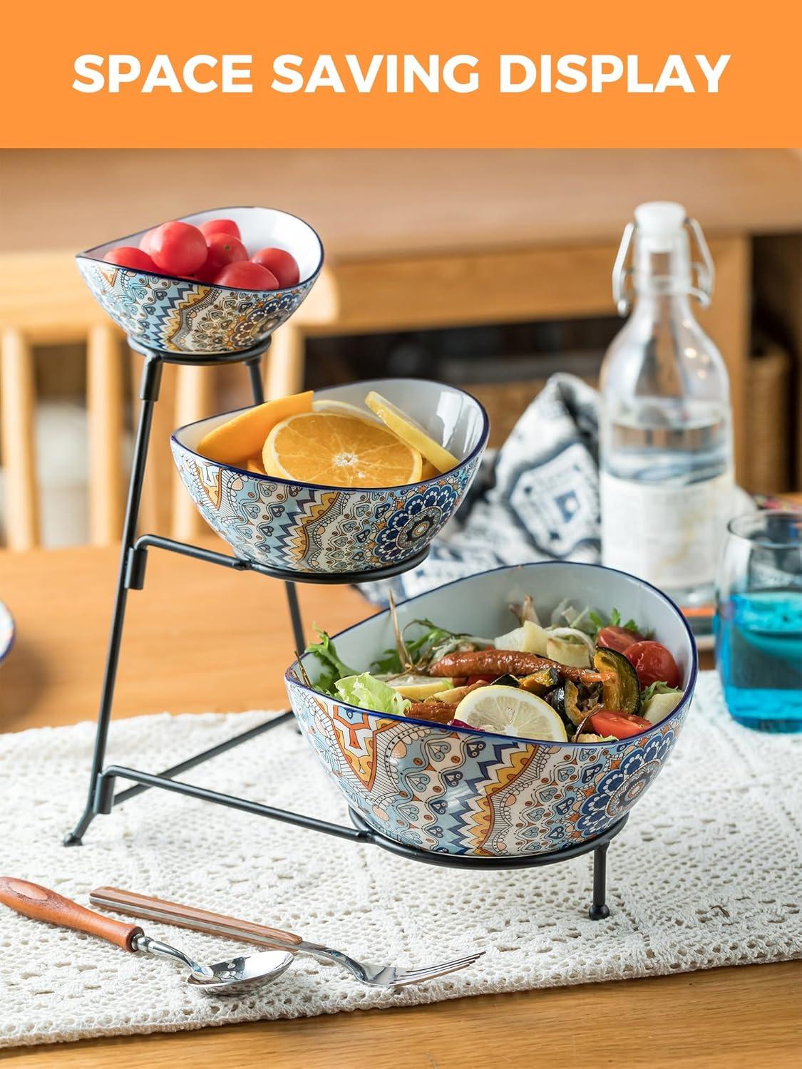 | Style | 3-tier oval bowl with metal stand |
