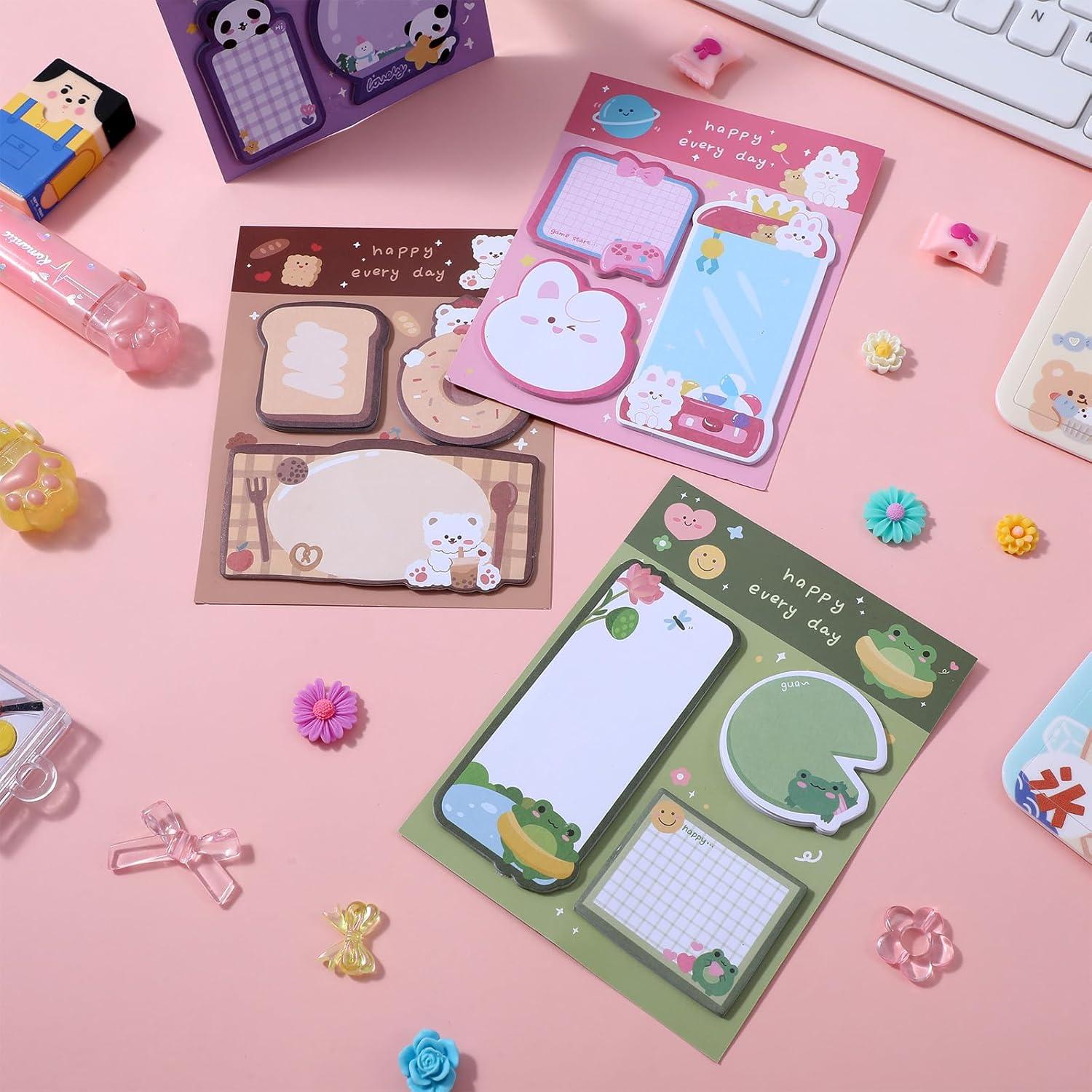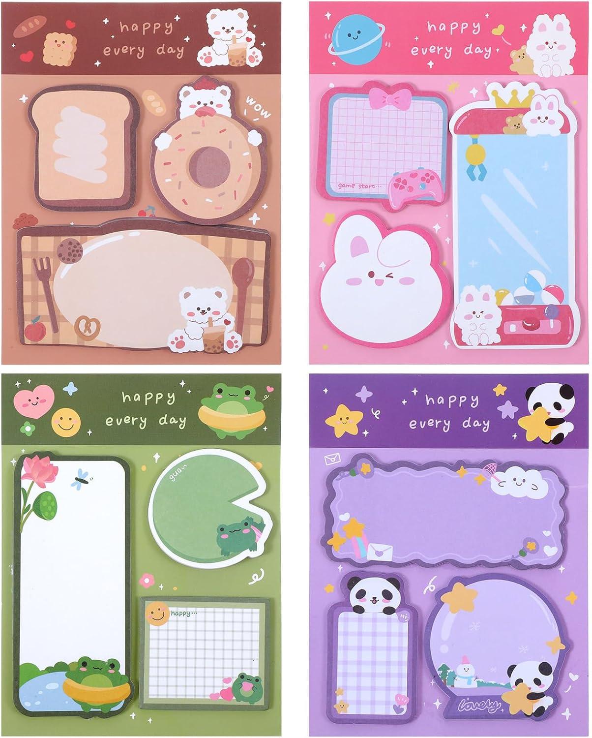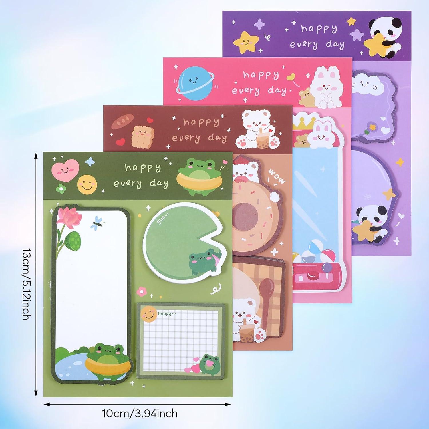 Qianyu 4 Pack Cute Cartoon Animal Sticky Notes Set 240 Sheets Self-Stick Animal Shape Memo Ps Kawaii Cartoon Small Sticky Note P School Students Home Office Roommates Gifts Tab Supplies Category: Sticky Notes Color: Pink Green Purple Khaki Style: None Material: Paper Function: These cute cartoon sticky notes can be used to leave messages, remind yourself, write to-do lists, record daily transactions, write down phone numbers or other instant messages, they are great stationery, office supplies,