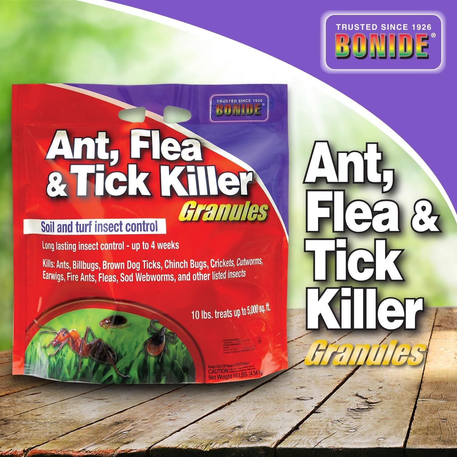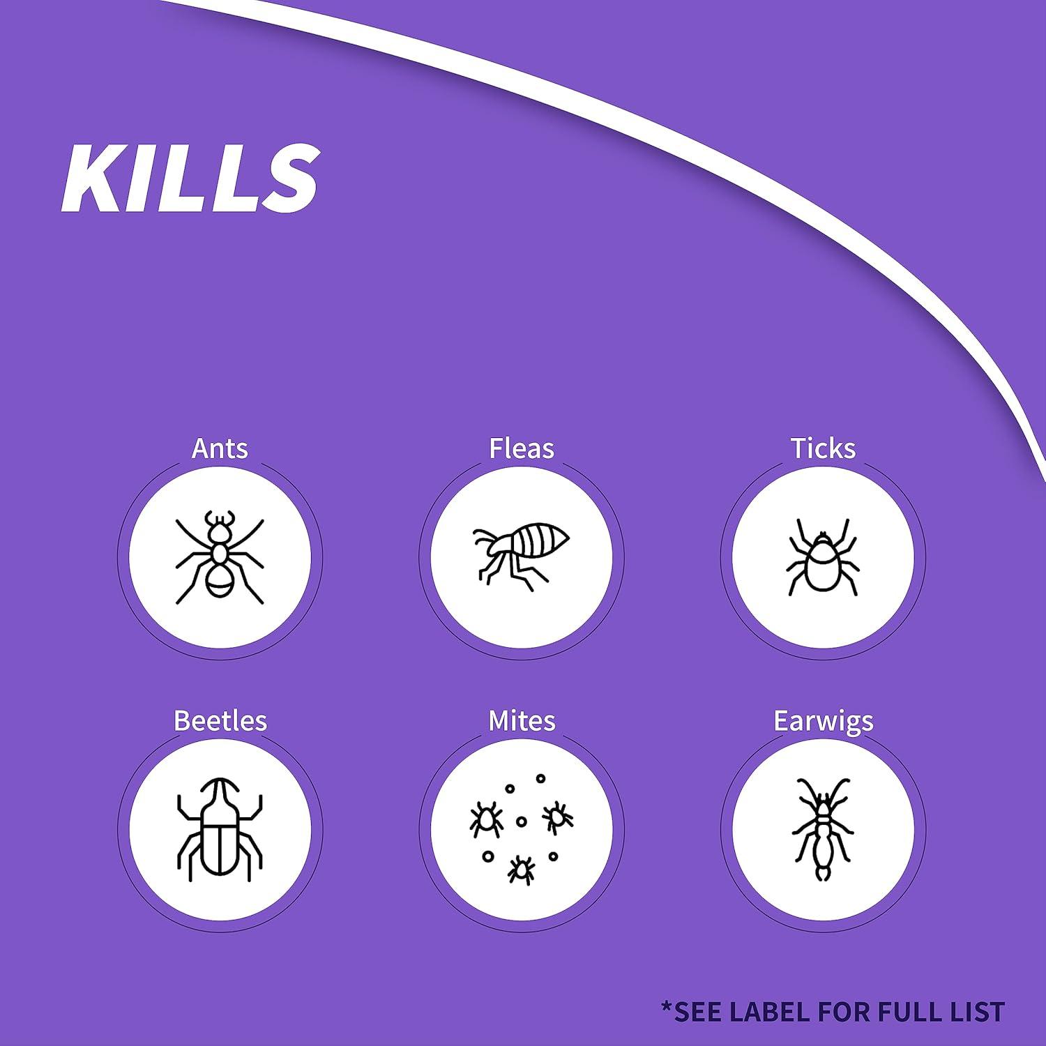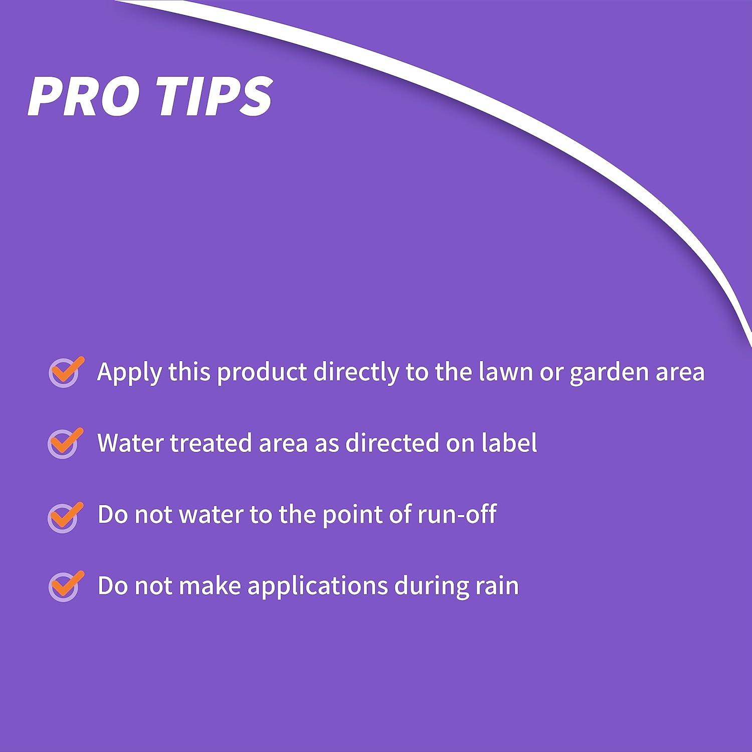 Fast acting, long lasting (4 weeks) insect control for lawns and home foundations. Great for ants, fire ants, fleas, ticks, crickets, earwigs, spiders, sowbugs, silverfish, clover mites, chinch bugs, armyworms, sod webworm, leaf hoppers, millipedes and certain grubs. 10 lbs treats 5,000 sq. ft.