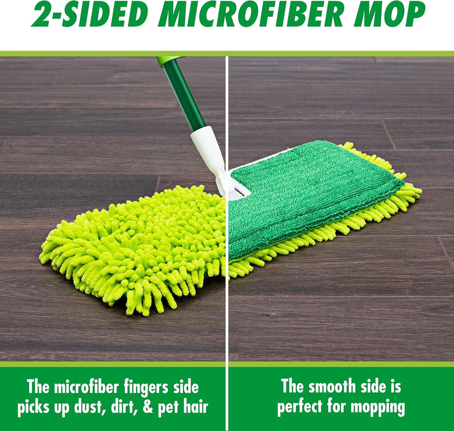The Libman 18" 2-Sided Microfiber Dust Mop – the ultimate answer to your hard surface floor cleaning challenges! Say goodbye to the hassle of keeping your hardwood floors spotless, because this handy tool has got you covered. This versatile tool is not just a mop; it's your all-in-one cleaning companion. From dusting to sweeping and mopping up spills, it handles every task with ease. Its flat microfiber side tackles spills efficiently, while the microfiber fingers on the other side ensure no dus